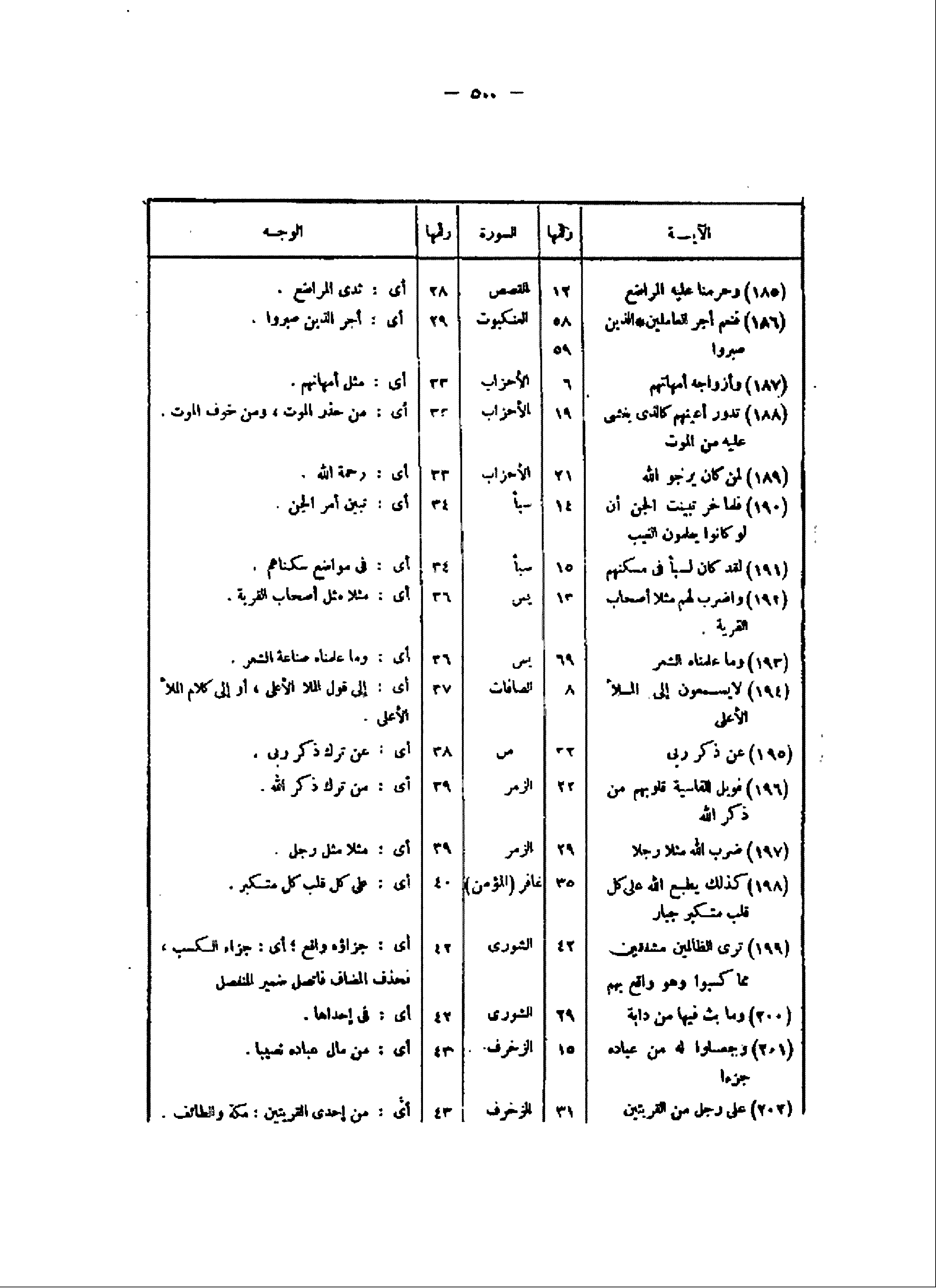 الآية/ رقمها/ السورة/ رقمها/ الوجه (185) وَحَرَّمْنا عَلَيْهِ الْمَراضِعَ/ 12/ القصص/ 28/ أى: ثدى المراضع.