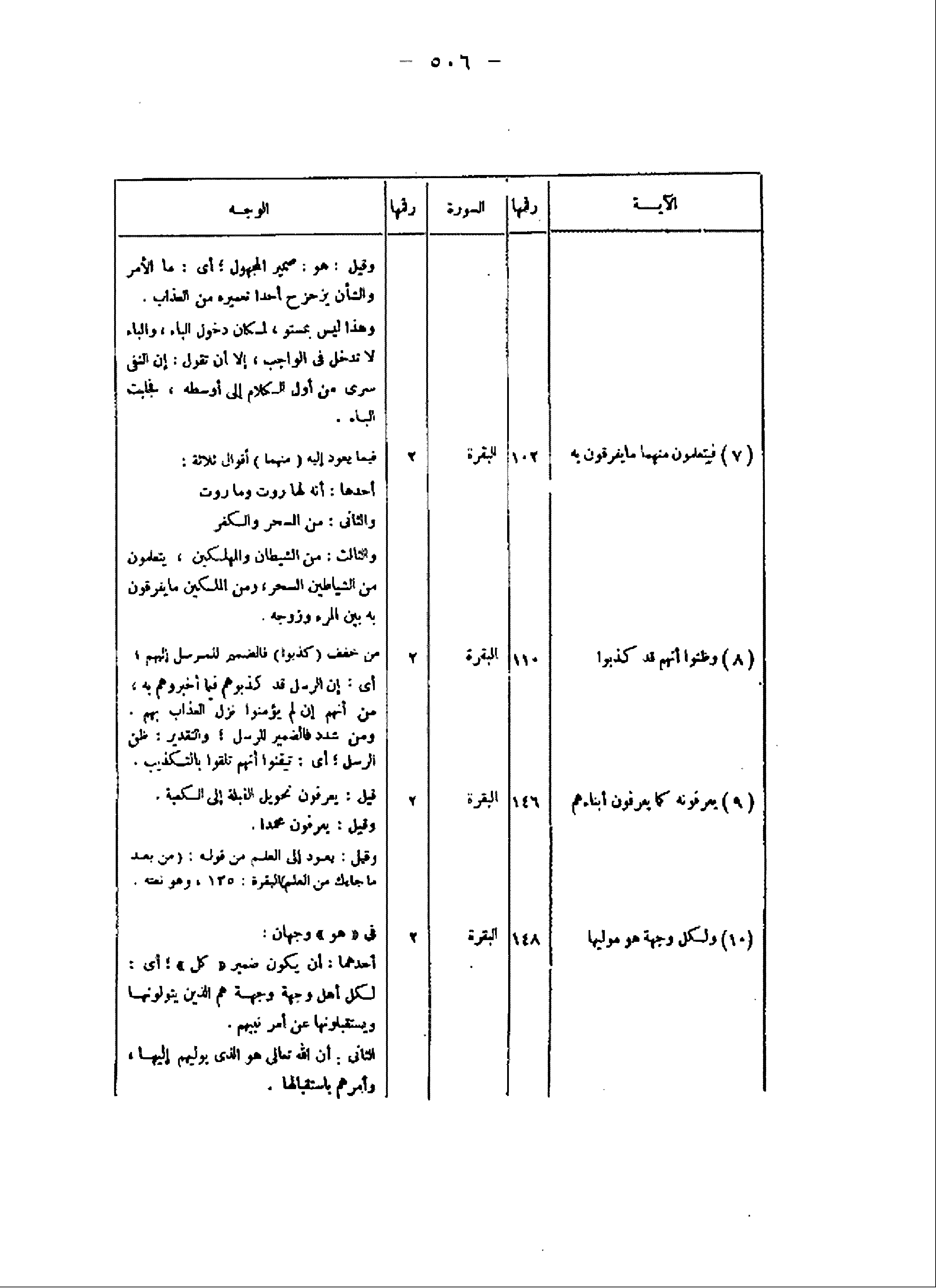 (7) فَيَتَعَلَّمُونَ مِنْهُما ما يُفَرِّقُونَ بِهِ/ 102/ البقرة/ 2/ فيما يعود إليه (منهما) أقوال ثلاثة:
