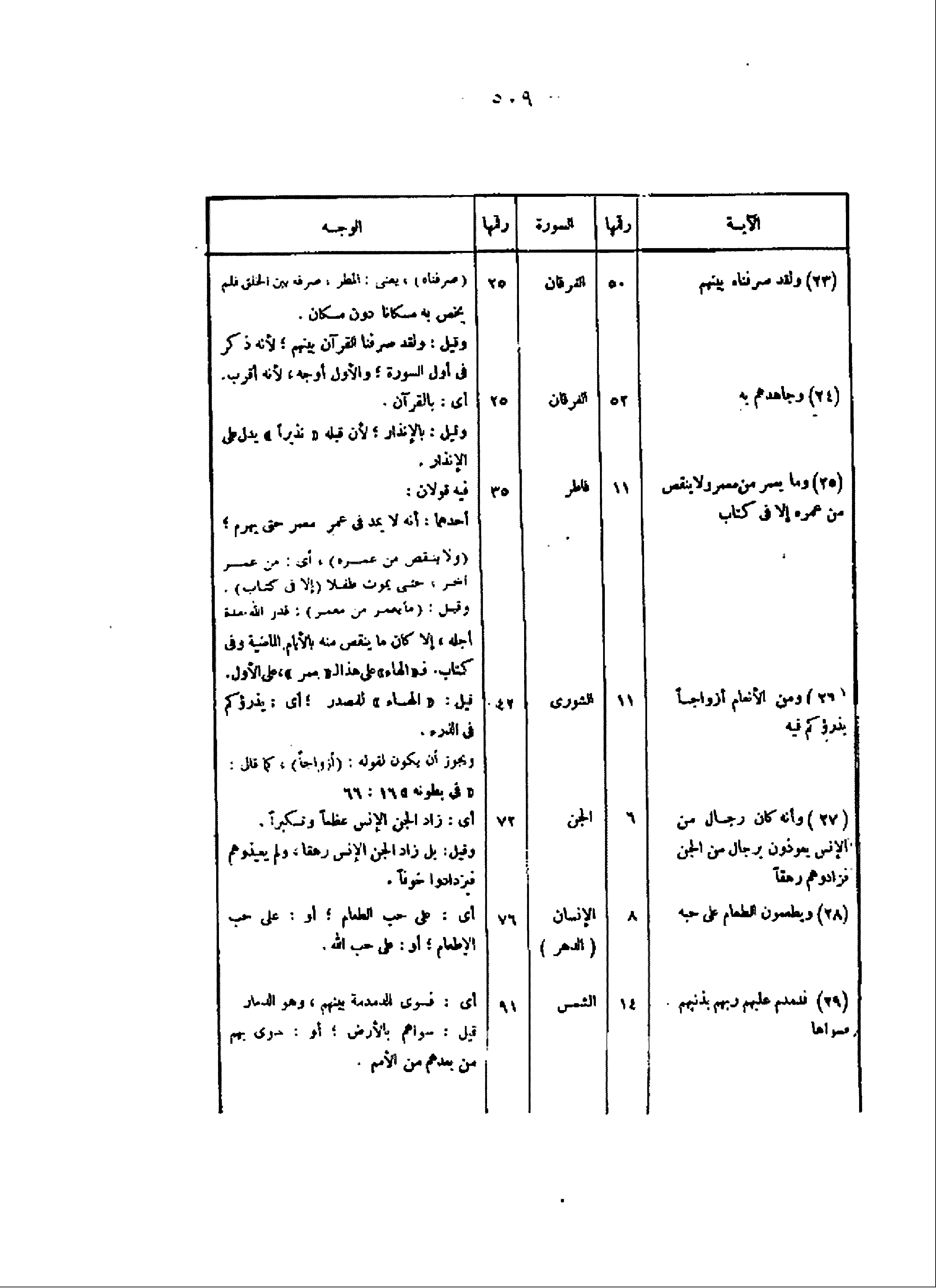 الآية/ رقمها/ السورة/ رقمها/ الوجه (23) وَلَقَدْ صَرَّفْناهُ بَيْنَهُمْ/ 50/ الفرقان/ 25/ (صرفناه) ، يعنى: المطر، صرفه بين الخلق فلم يخص به مكانا دون مكان.
