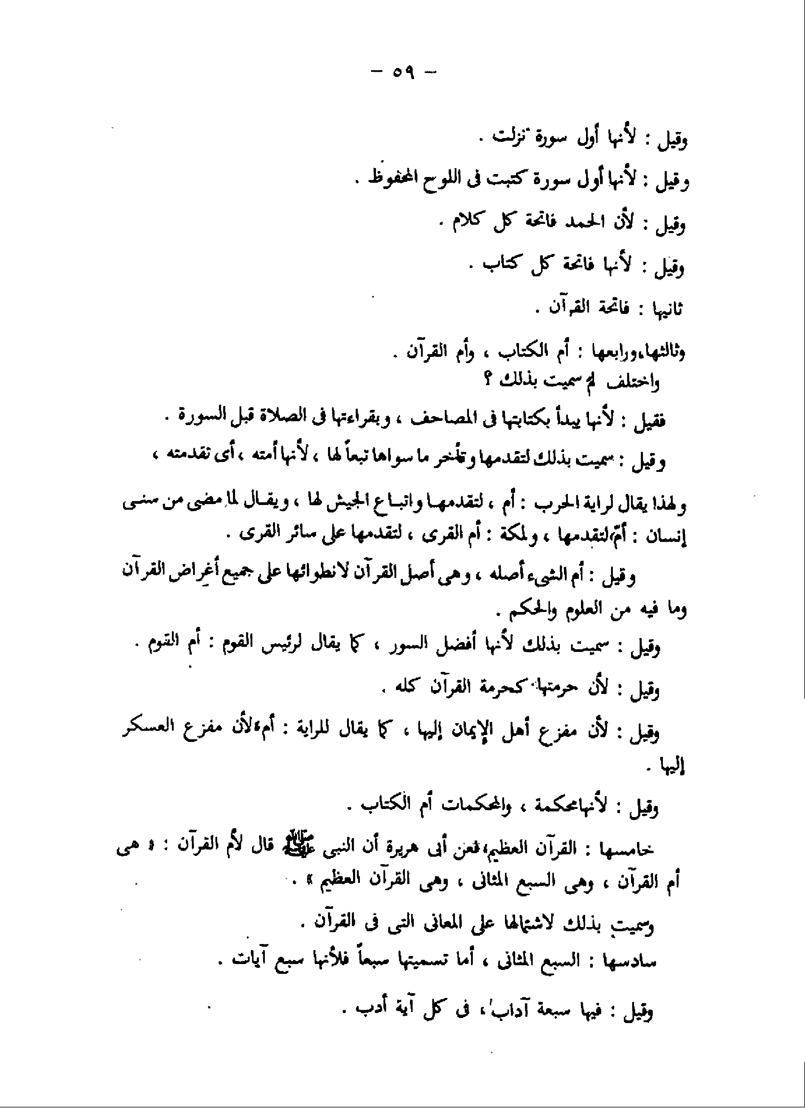 سادسها: السبع المثانى، أما تسميتها سبعا فلأنها سبع آيات.