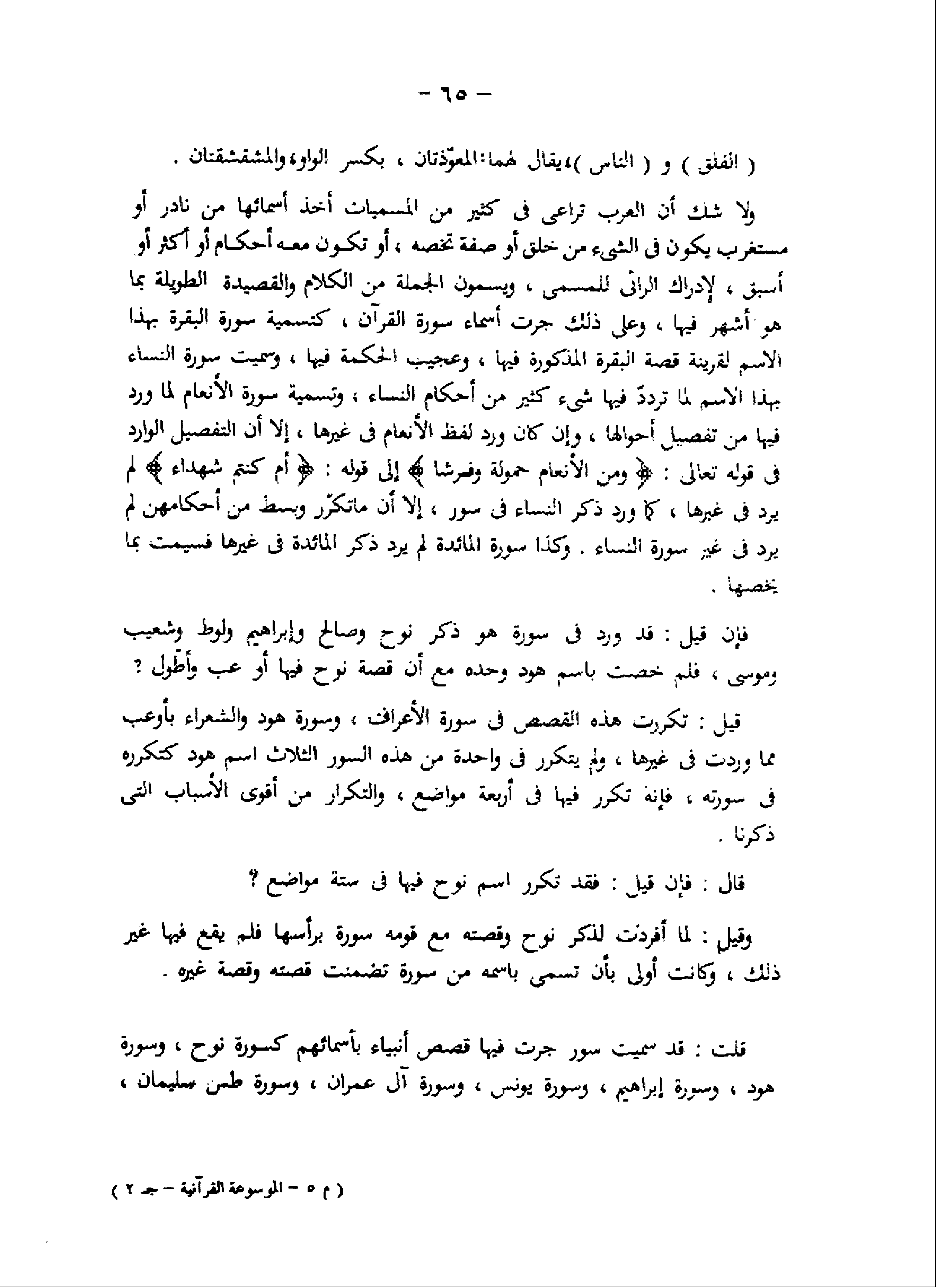 قلت: قد سميت سور جرت فيها قصص أنبياء بأسمائهم كسورة نوح، وسورة هود، وسورة إبراهيم، وسورة يونس، وسورة آل عمران، وسورة طس سليمان، (م 5- الموسوعة القرآنية- ج 2)