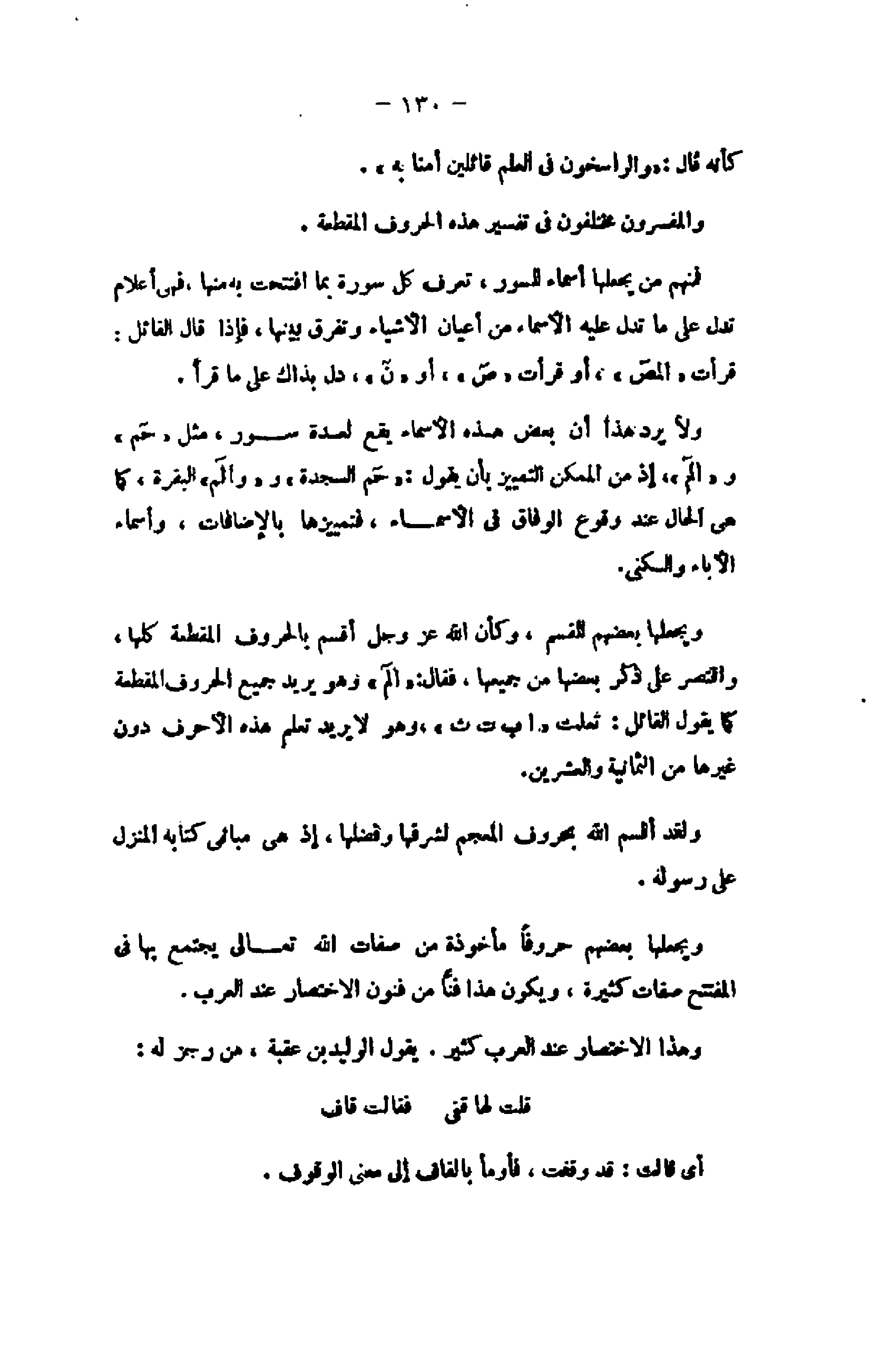 ويجعلها بعضهم حروفا مأخوذة من صفات الله تعالى يجتمع بها فى المفتتح صفات كثيرة، ويكون هذا فنّا من فنون الاختصار عند العرب.