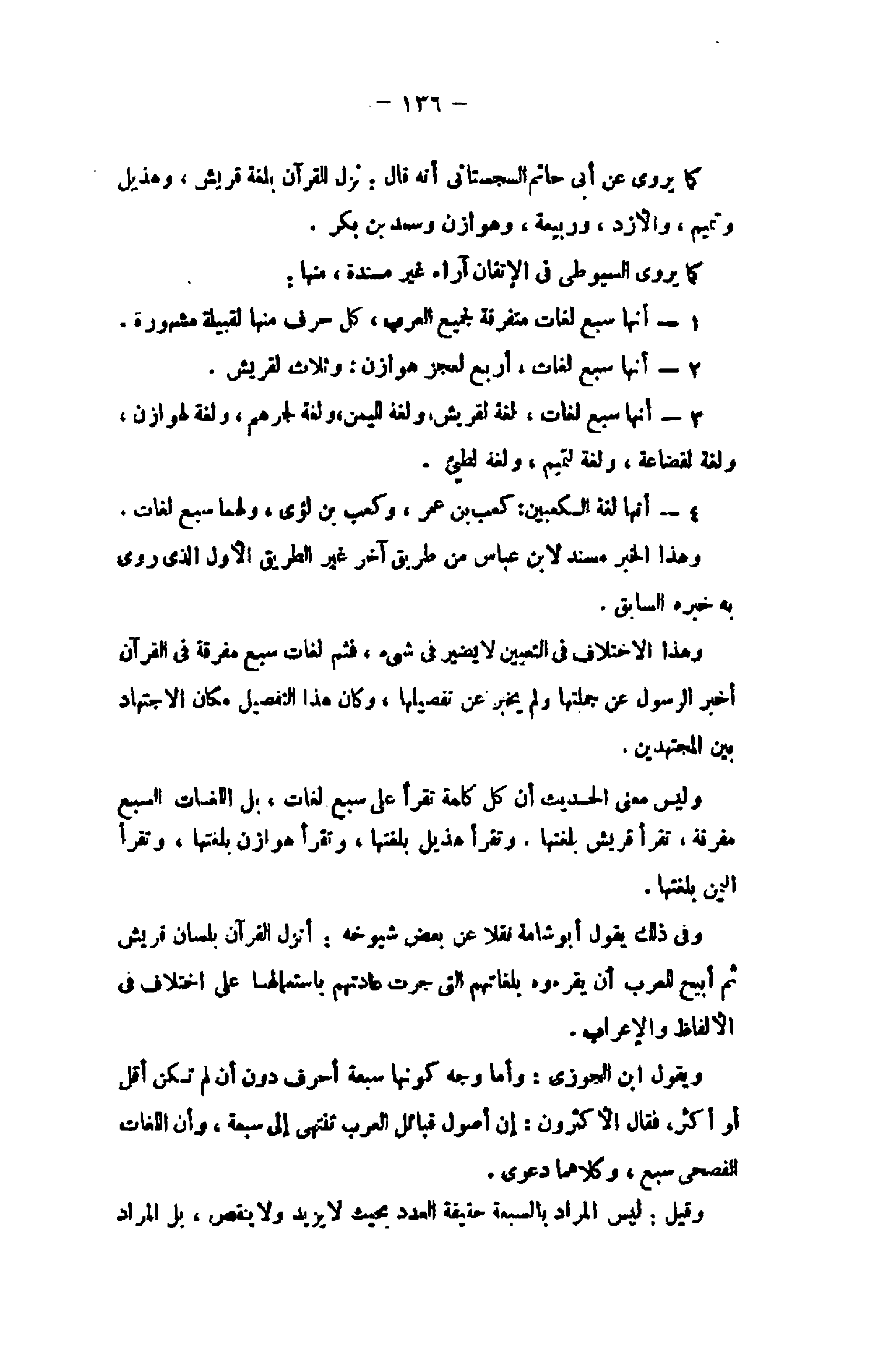 وهذا الاختلاف فى التعيين لا يضير فى شىء، فثم لغات سبع مفرقة فى القرآن أخبر الرسول عن جملتها ولم يخبر عن تفصيلها، وكان هذا التفصيل مكان الاجتهاد بين المجتهدين.