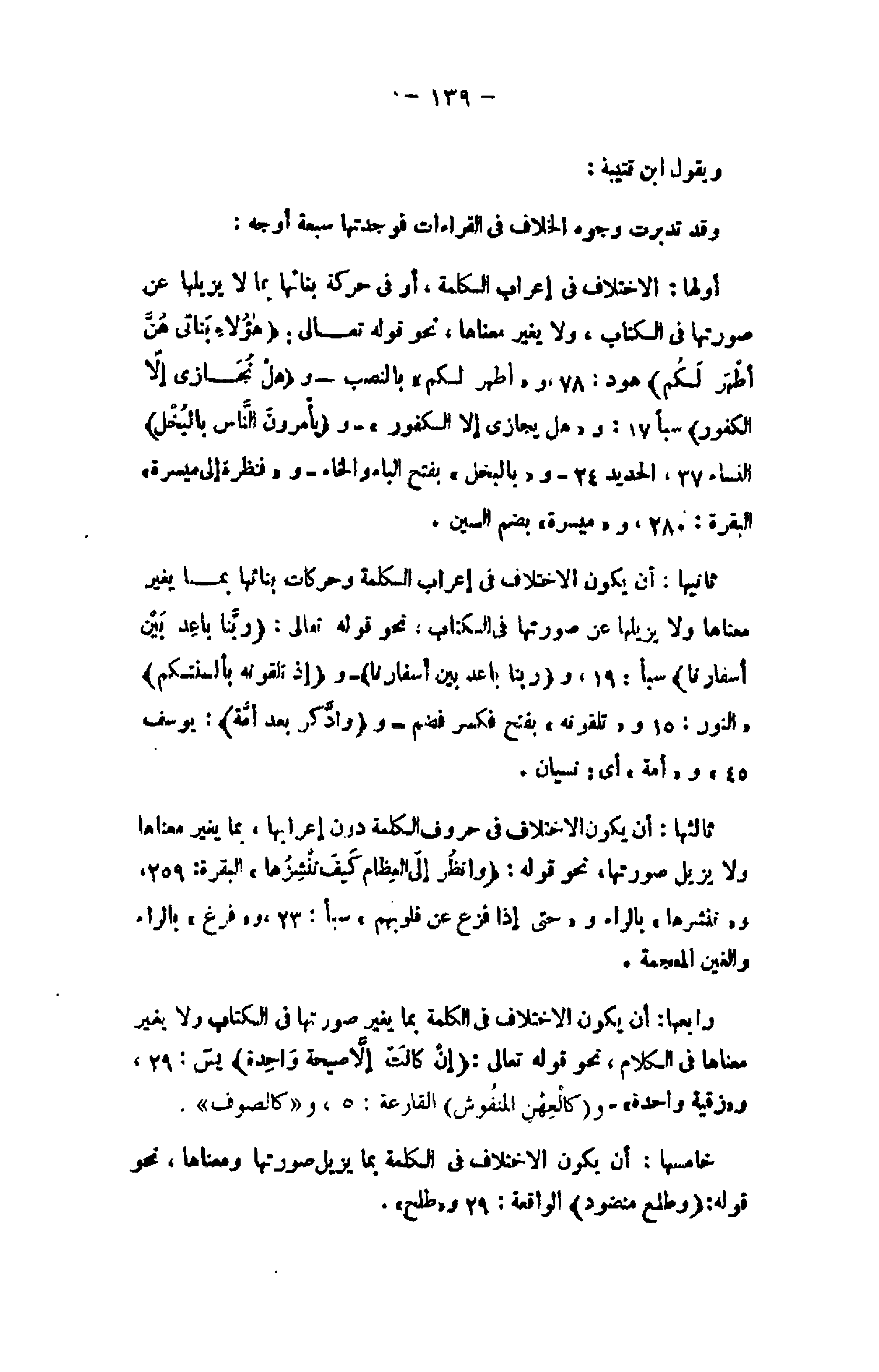 وقد تدبرت وجوه الخلاف فى القراءات فوجدتها سبعة أوجه: