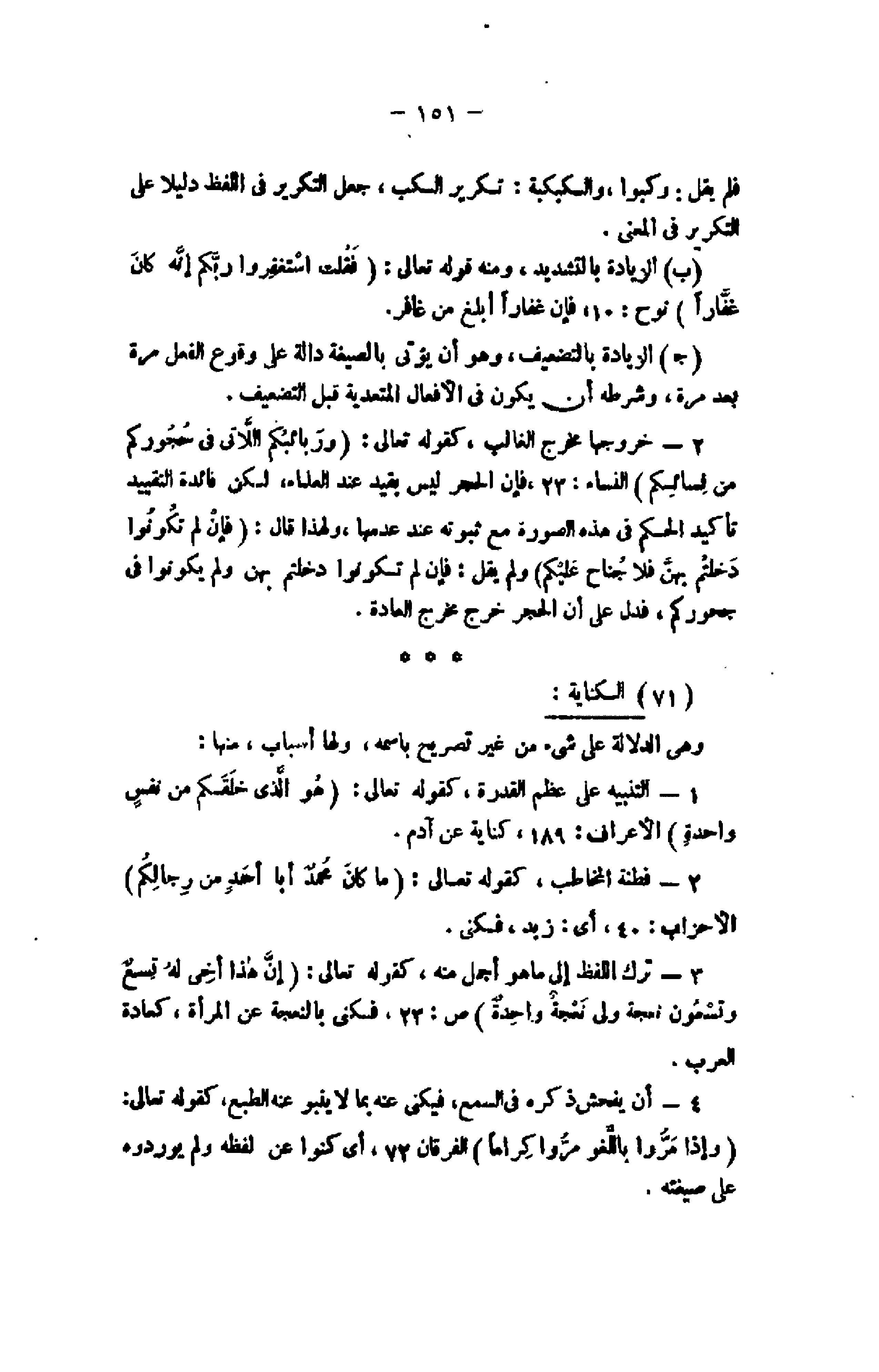 (ب) الزيادة بالتشديد، ومنه قوله تعالى: فَقُلْتُ اسْتَغْفِرُوا رَبَّكُمْ إِنَّهُ كانَ غَفَّاراً نوح: 10، فإن غفارا أبلغ من غافر.
