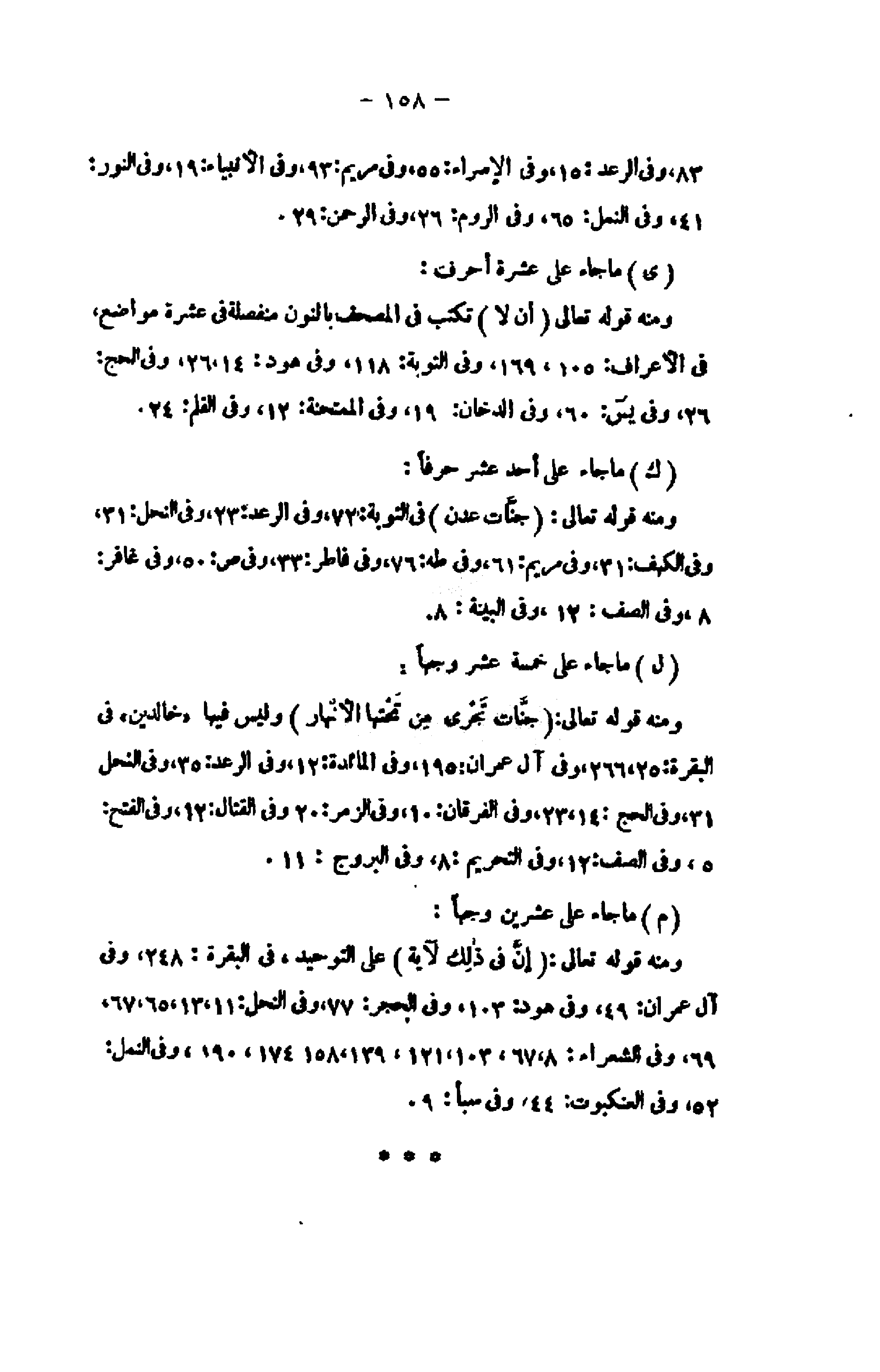 ومنه قوله تعالى: جَنَّاتٍ تَجْرِي مِنْ تَحْتِهَا الْأَنْهارُ وليس فيها «خالدين» فى البقرة: 25، 266، وفى آل عمران: 195، وفى المائدة: 12، وفى الرعد: 35، وفى النحل 31، وفى الحج: 14، 23، وفى الفرقان: 10، وفى الزمر: 20 وفى القتال: 12، وفى الفتح: