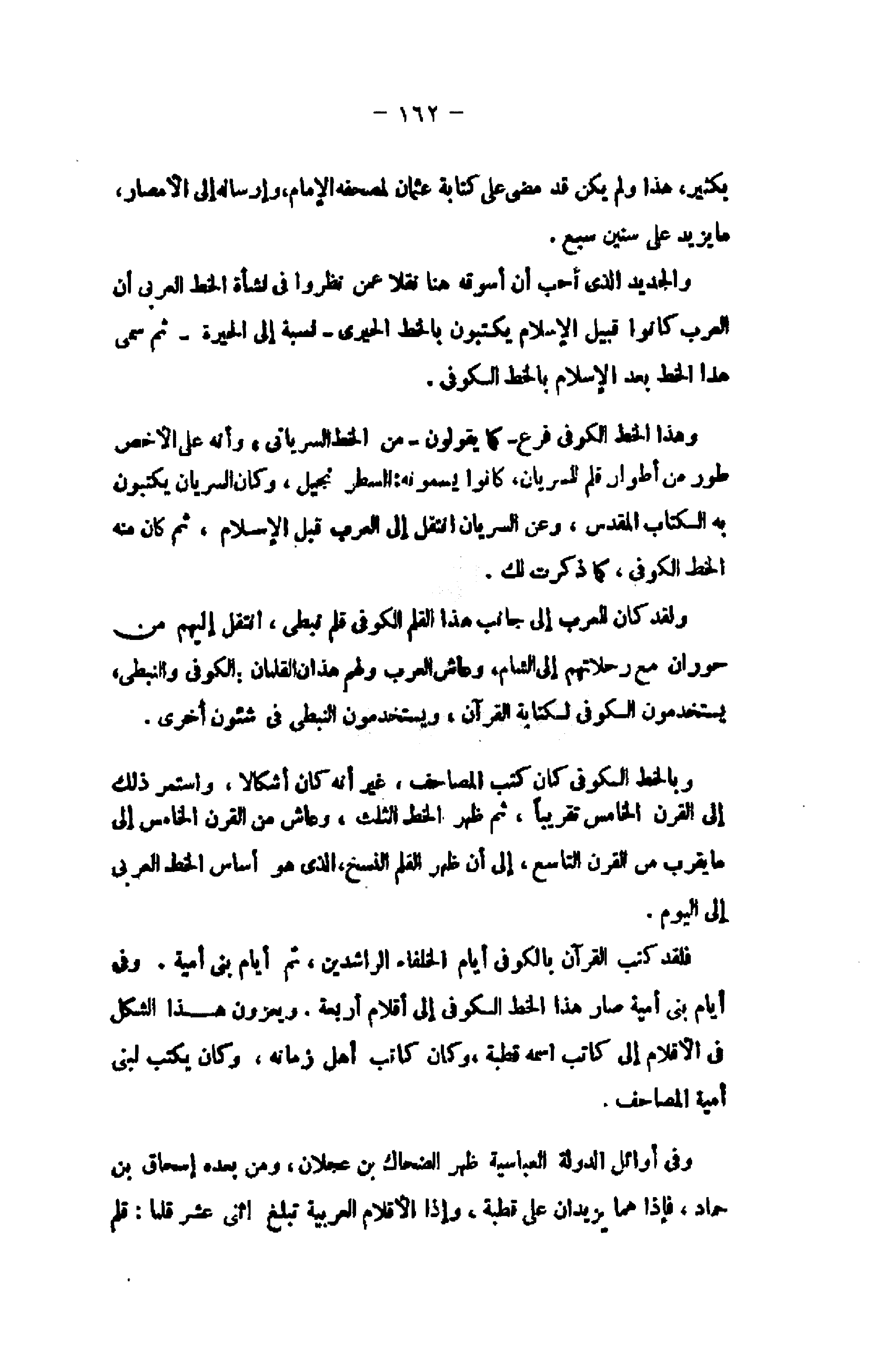 وهذا الخط الكوفى فرع- كما يقولون- من الخط السريانى» وأنه على الأخص طور من أطوار قلم للسريان، كانوا يسمونه: السطرنجيل، وكان السريان يكتبون به الكتاب المقدس، وعن السريان انتقل إلى العرب قبل الإسلام، ثم كان منه الخط الكوفى، كما ذكرت لك.