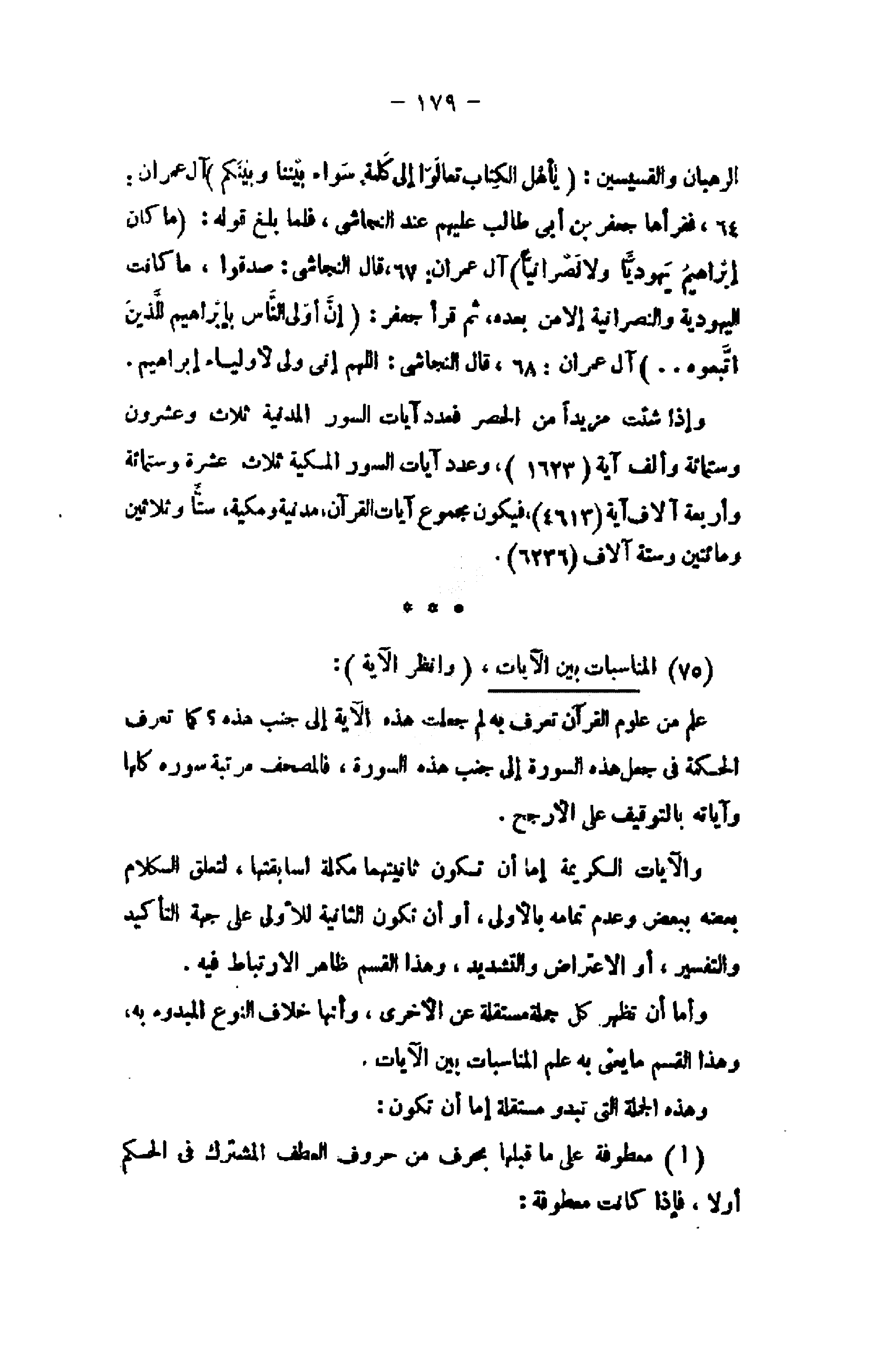 وأما أن تظهر كل جملة مستقلة عن الأخرى، وأنها خلاف النوع المبدوء به، وهذا القسم ما يعنى به علم المناسبات بين الآيات.