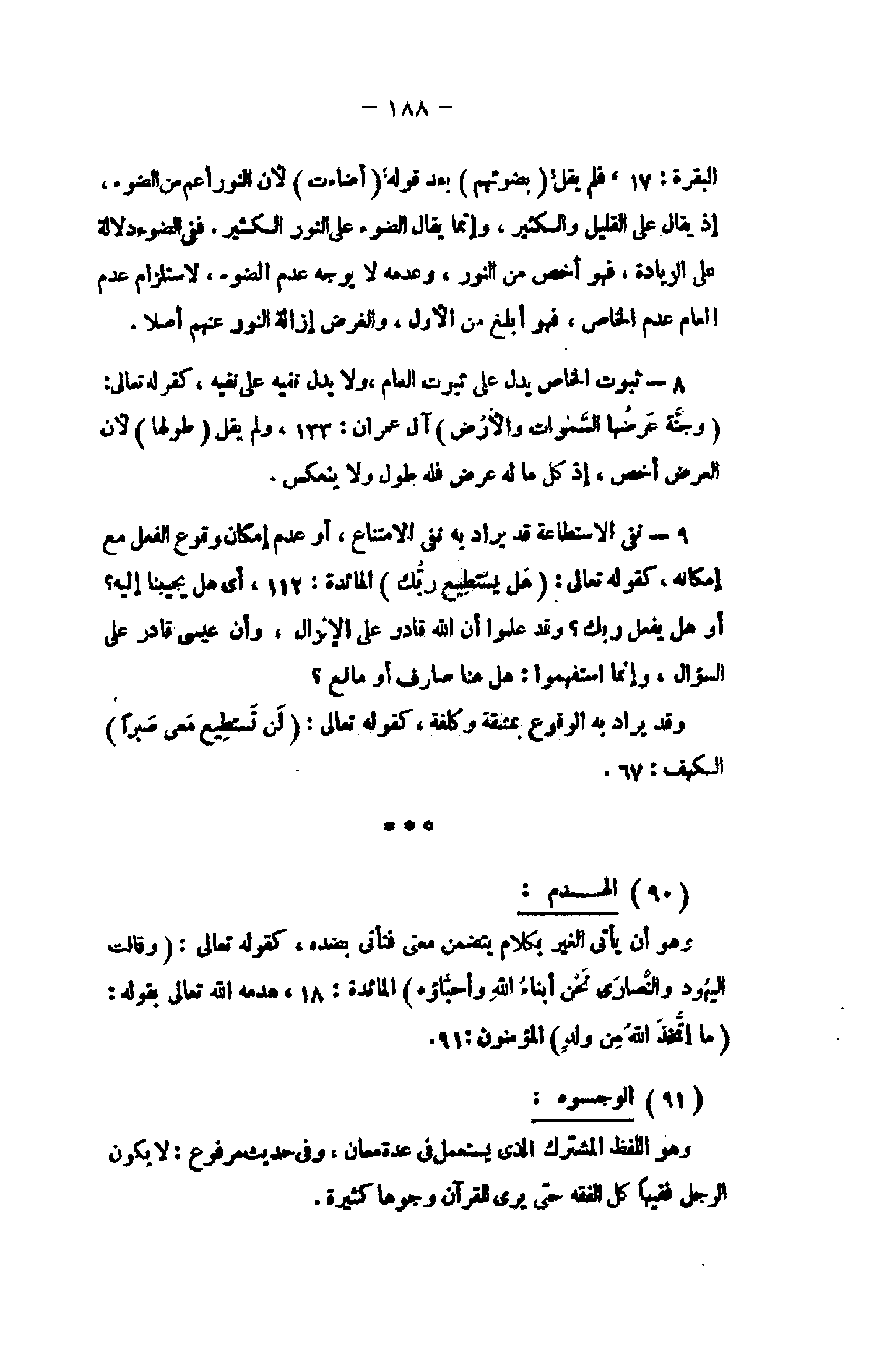 9- نفى الاستطاعة قد يراد به نفى الامتناع، أو عدم إمكان وقوع الفعل مع إمكانه، كقوله تعالى: هَلْ يَسْتَطِيعُ رَبُّكَ المائدة: 112، أى هل يجيبنا إليه؟