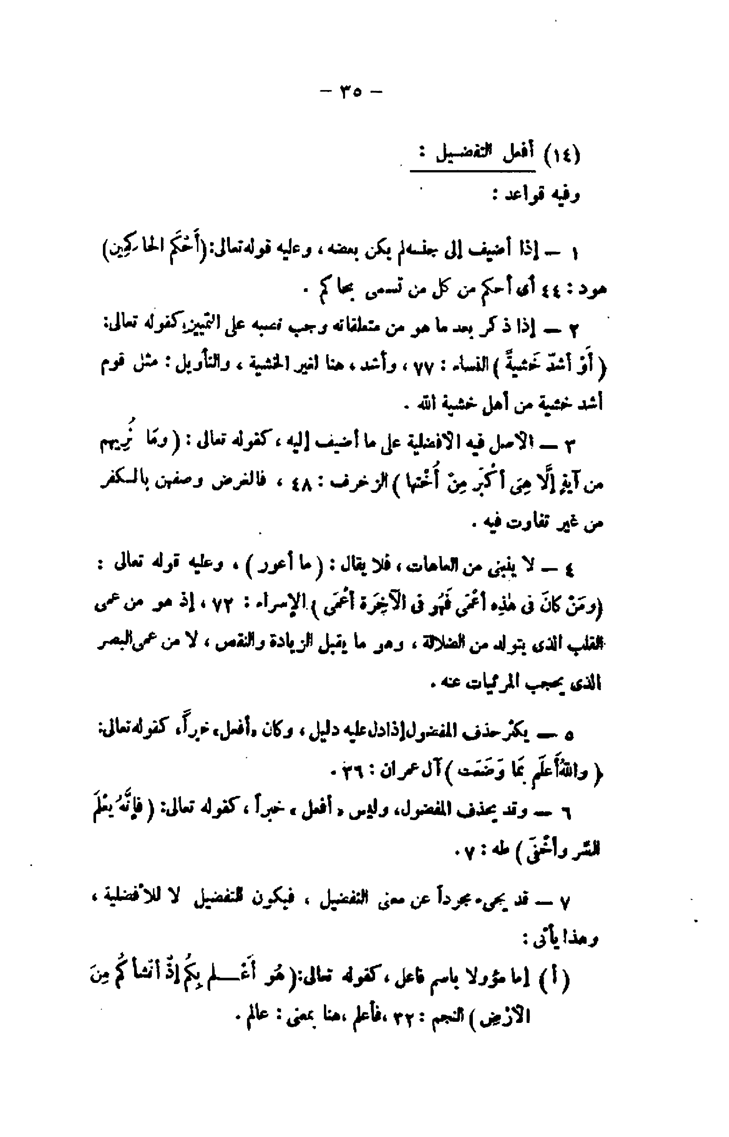 3- الأصل فيه الأفضلية على ما أضيف إليه، كقوله تعالى: وَما نُرِيهِمْ مِنْ آيَةٍ إِلَّا هِيَ أَكْبَرُ مِنْ أُخْتِها الزخرف: 48، فالغرض وصفهن بالكفر من غير تفاوت فيه.