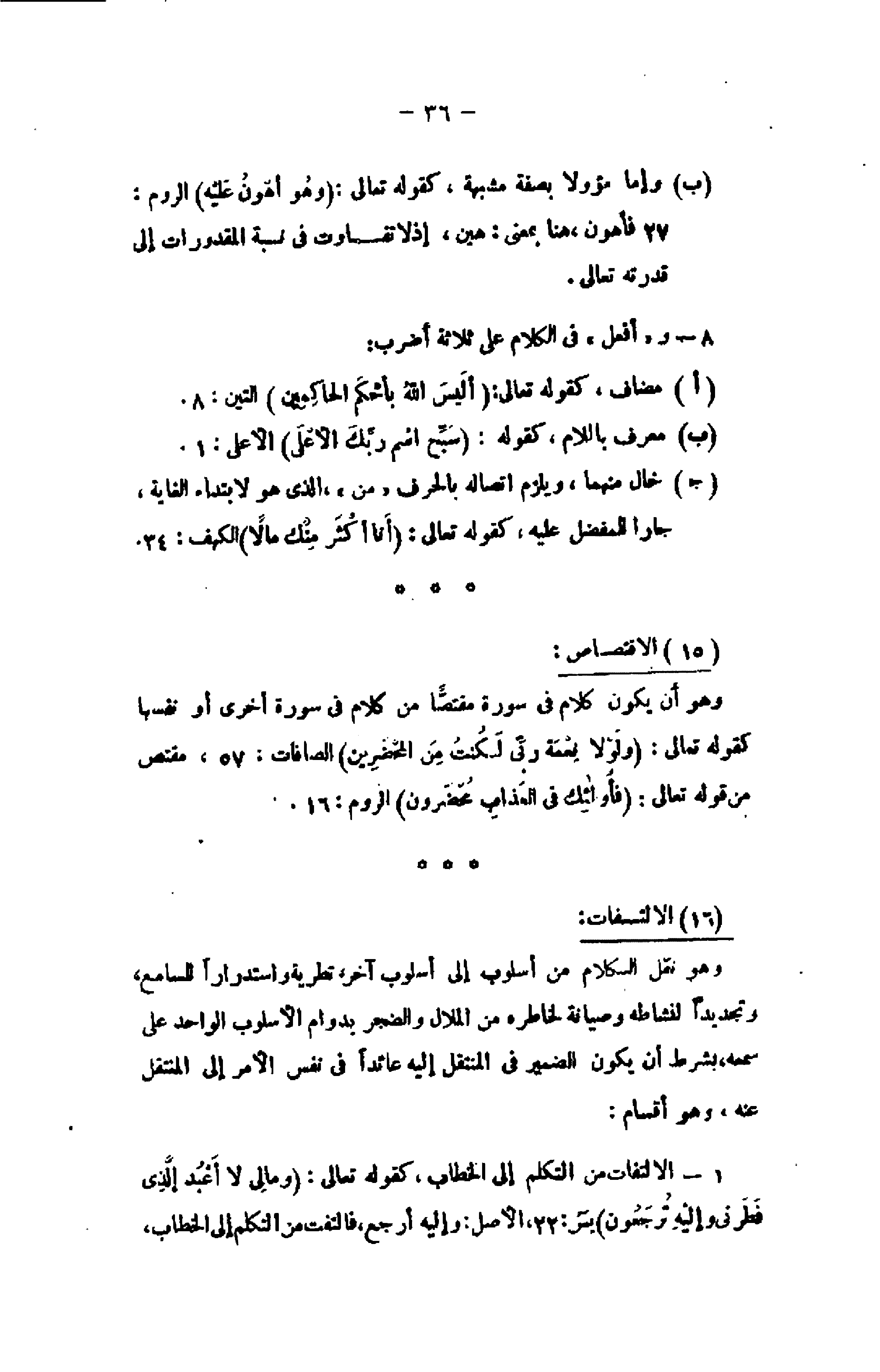1- الالتفات من التكلم إلى الخطاب، كقوله تعالى: وَما لِيَ لا أَعْبُدُ الَّذِي فَطَرَنِي وَإِلَيْهِ تُرْجَعُونَ يس: 22، الأصل: وإليه أرجع، فالتفت من التكلم إلى الخطاب،