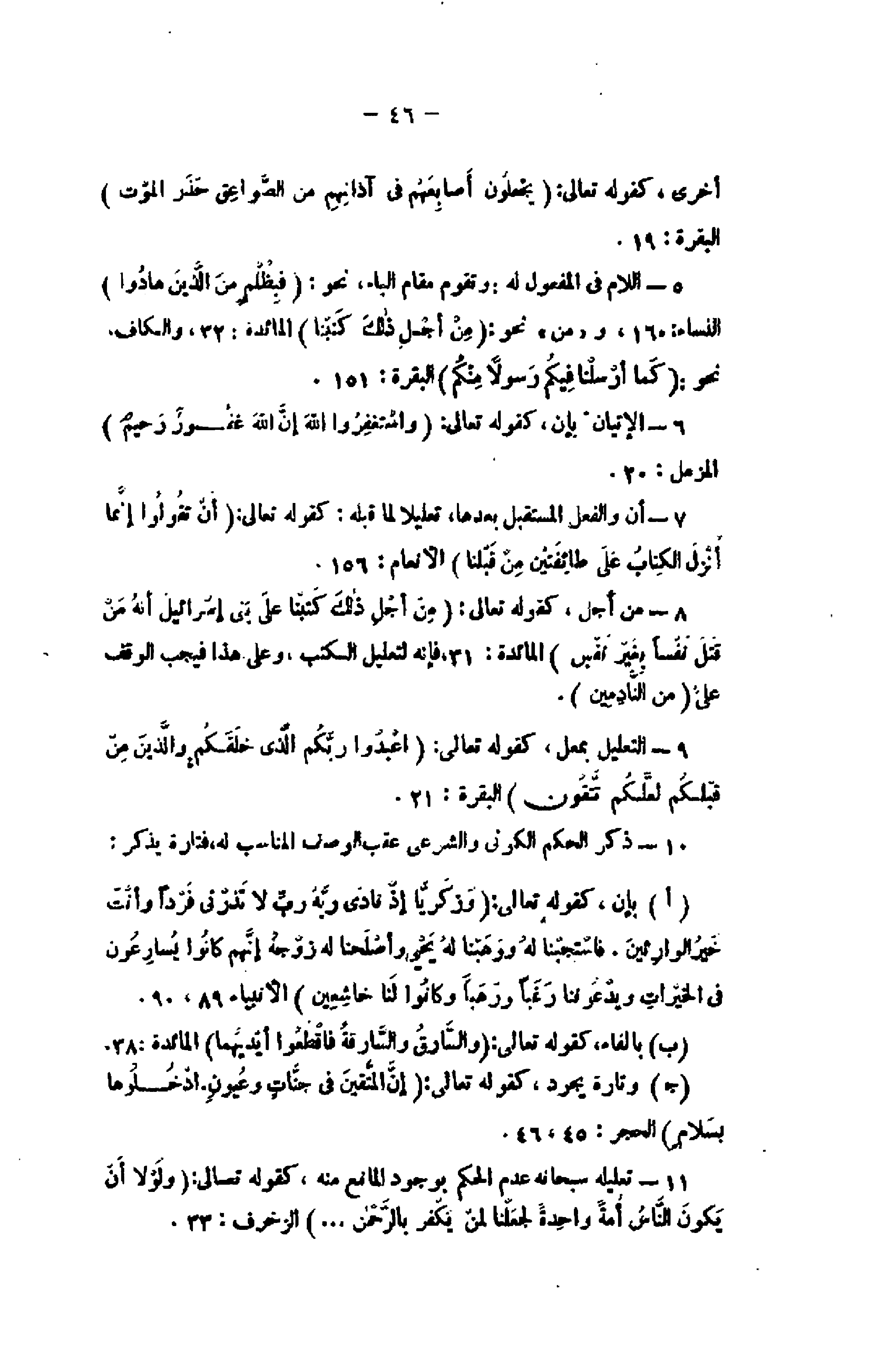 9- التعليل بمعل، كقوله تعالى: اعْبُدُوا رَبَّكُمُ الَّذِي خَلَقَكُمْ وَالَّذِينَ مِنْ قَبْلِكُمْ لَعَلَّكُمْ تَتَّقُونَ البقرة: 21.