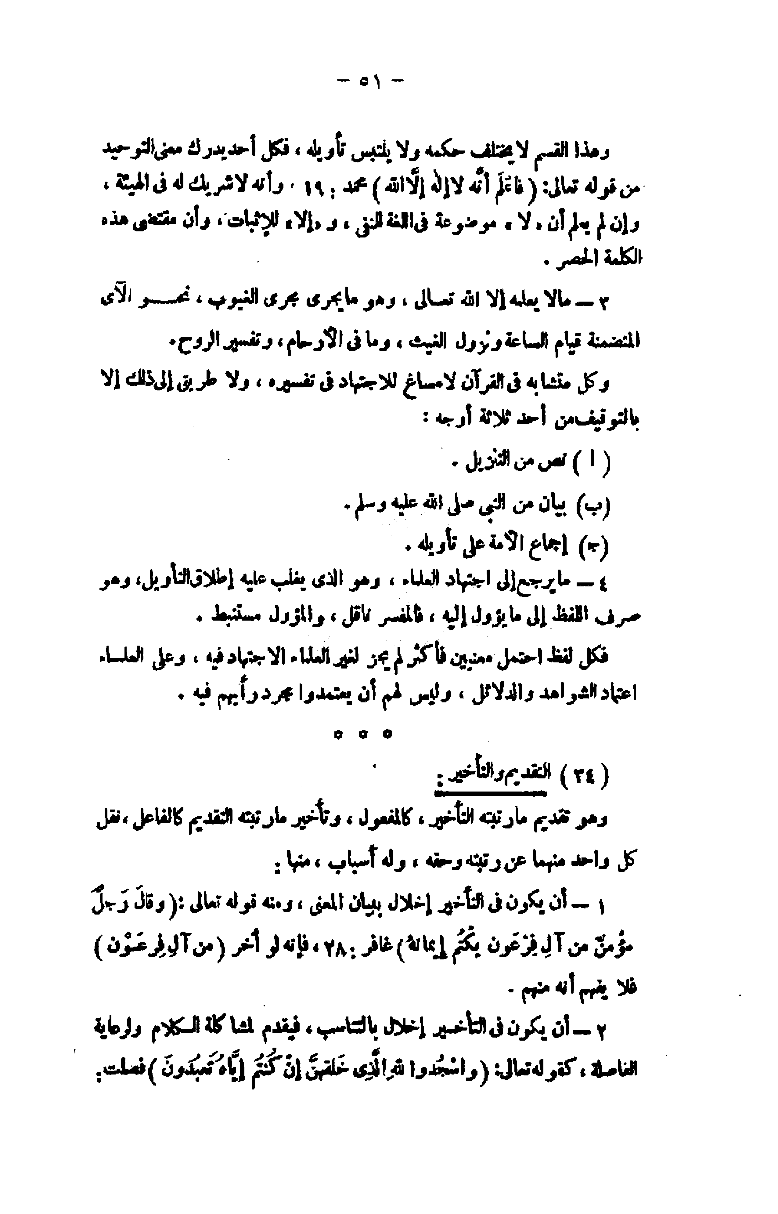 وهذا القسم لا يختلف حكمه ولا يلتبس تأويله، فكل أحد يدرك معنى التوحيد من قوله تعالى: فَاعْلَمْ أَنَّهُ لا إِلهَ إِلَّا اللَّهُ محمد: 19، وأنه لا شريك له فى الهيئة، وإن لم يعلم أن «لا» موضوعة فى اللغة للنفى، و «إلا» للإثبات، وأن مقتضى هذه الكلمة الحصر.