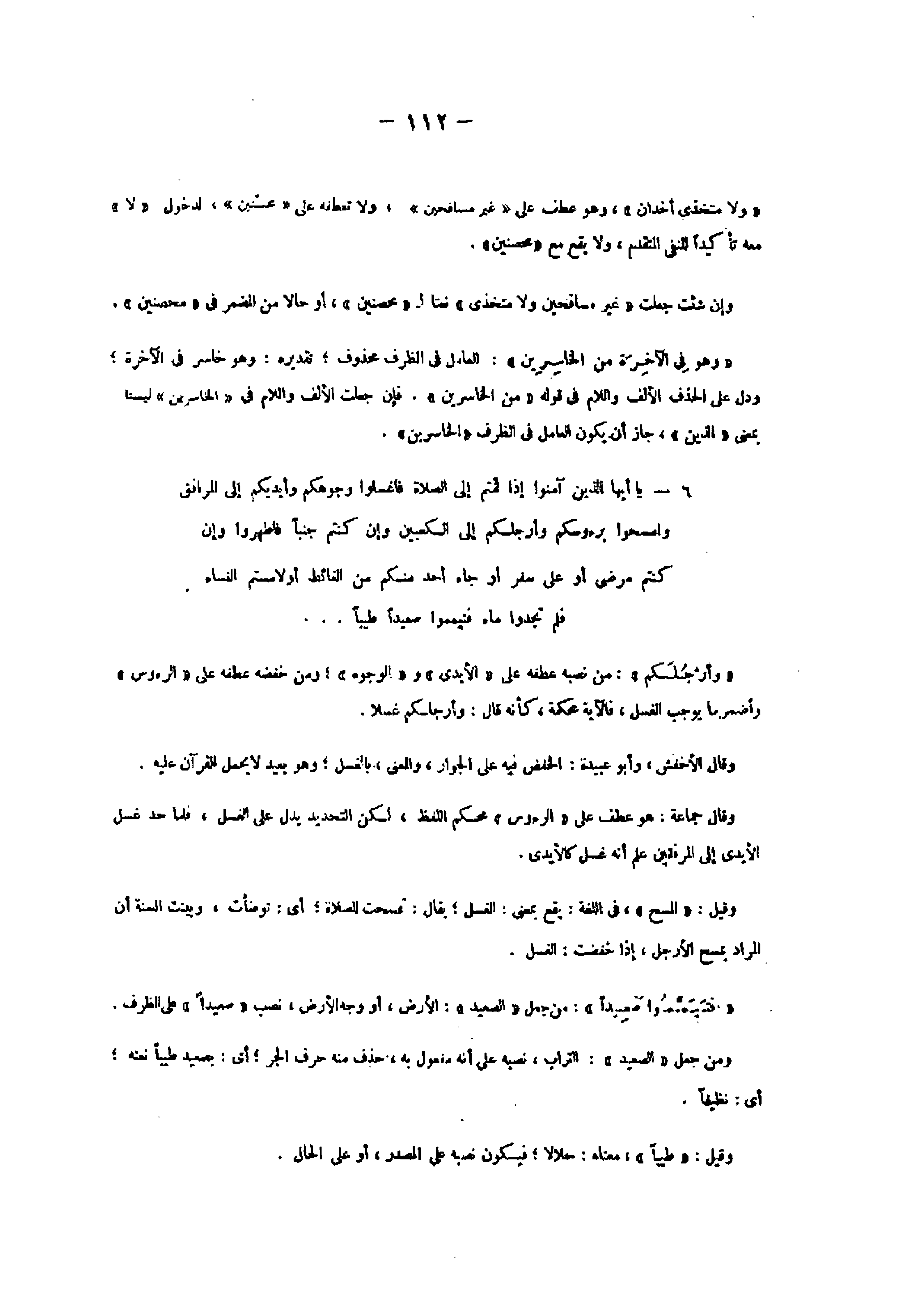 6- يا أَيُّهَا الَّذِينَ آمَنُوا إِذا قُمْتُمْ إِلَى الصَّلاةِ فَاغْسِلُوا وُجُوهَكُمْ وَأَيْدِيَكُمْ إِلَى الْمَرافِقِ وَامْسَحُوا بِرُؤُسِكُمْ وَأَرْجُلَكُمْ إِلَى الْكَعْبَيْنِ وَإِنْ كُنْتُمْ جُنُباً فَاطَّهَّرُوا وَإِنْ كُنْتُمْ مَرْضى أَوْ عَلى سَفَرٍ أَوْ جاءَ أَحَدٌ مِنْكُمْ مِنَ الْغائِطِ أَوْ لامَسْتُمُ النِّساءَ فَلَمْ تَجِدُوا ماءً فَتَيَمَّمُوا صَعِيداً طَيِّباً ...
