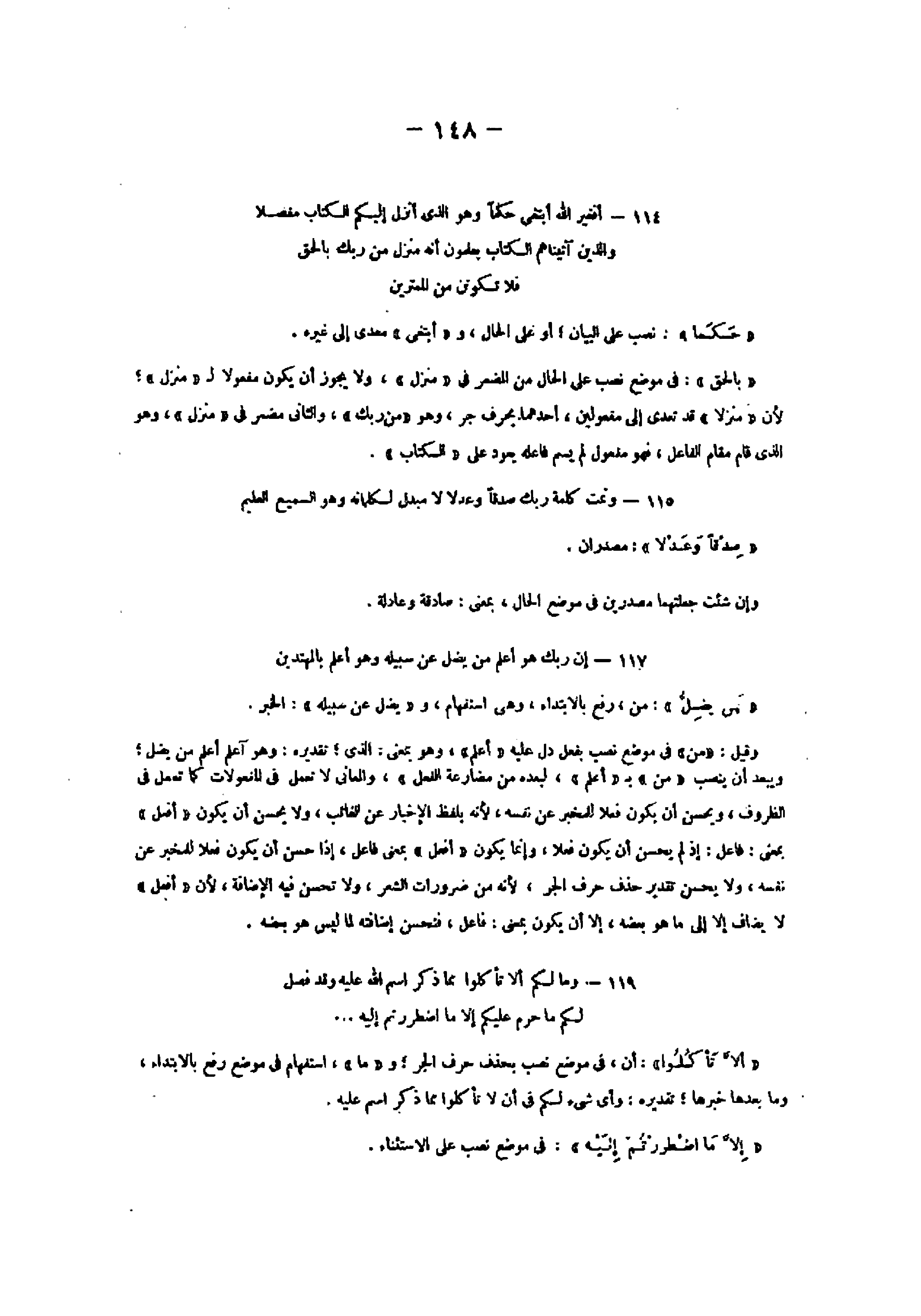 114- أَفَغَيْرَ اللَّهِ أَبْتَغِي حَكَماً وَهُوَ الَّذِي أَنْزَلَ إِلَيْكُمُ الْكِتابَ مُفَصَّلًا وَالَّذِينَ آتَيْناهُمُ الْكِتابَ يَعْلَمُونَ أَنَّهُ مُنَزَّلٌ مِنْ رَبِّكَ بِالْحَقِّ فَلا تَكُونَنَّ مِنَ الْمُمْتَرِينَ «حكما» : نصب على البيان أو على الحال، و «أبتغى» معدى إلى غيره.