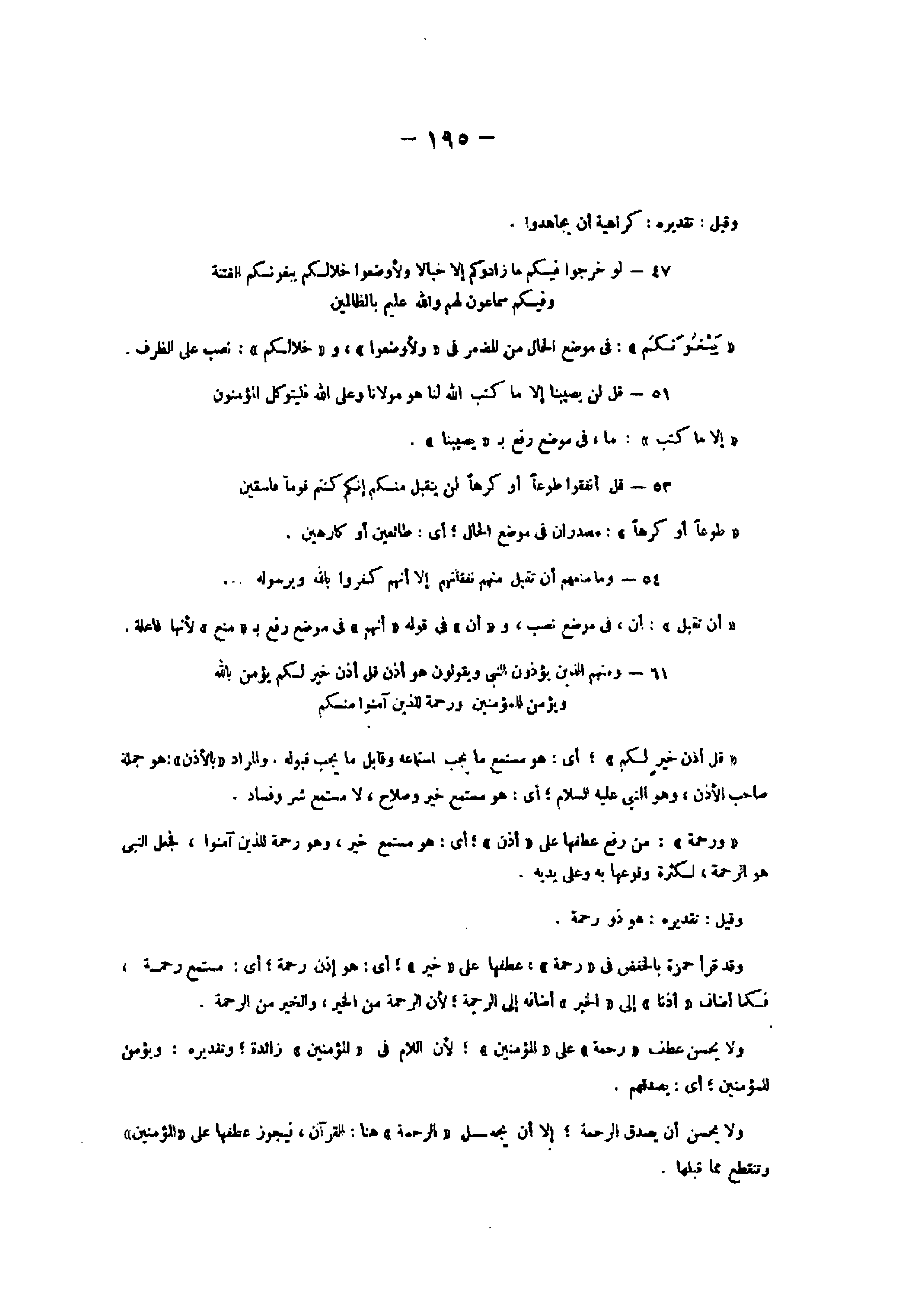 53- قُلْ أَنْفِقُوا طَوْعاً أَوْ كَرْهاً لَنْ يُتَقَبَّلَ مِنْكُمْ إِنَّكُمْ كُنْتُمْ قَوْماً فاسِقِينَ «طوعا أو كرها» : مصدران فى موضع الحال أي: طائعين أو كارهين.