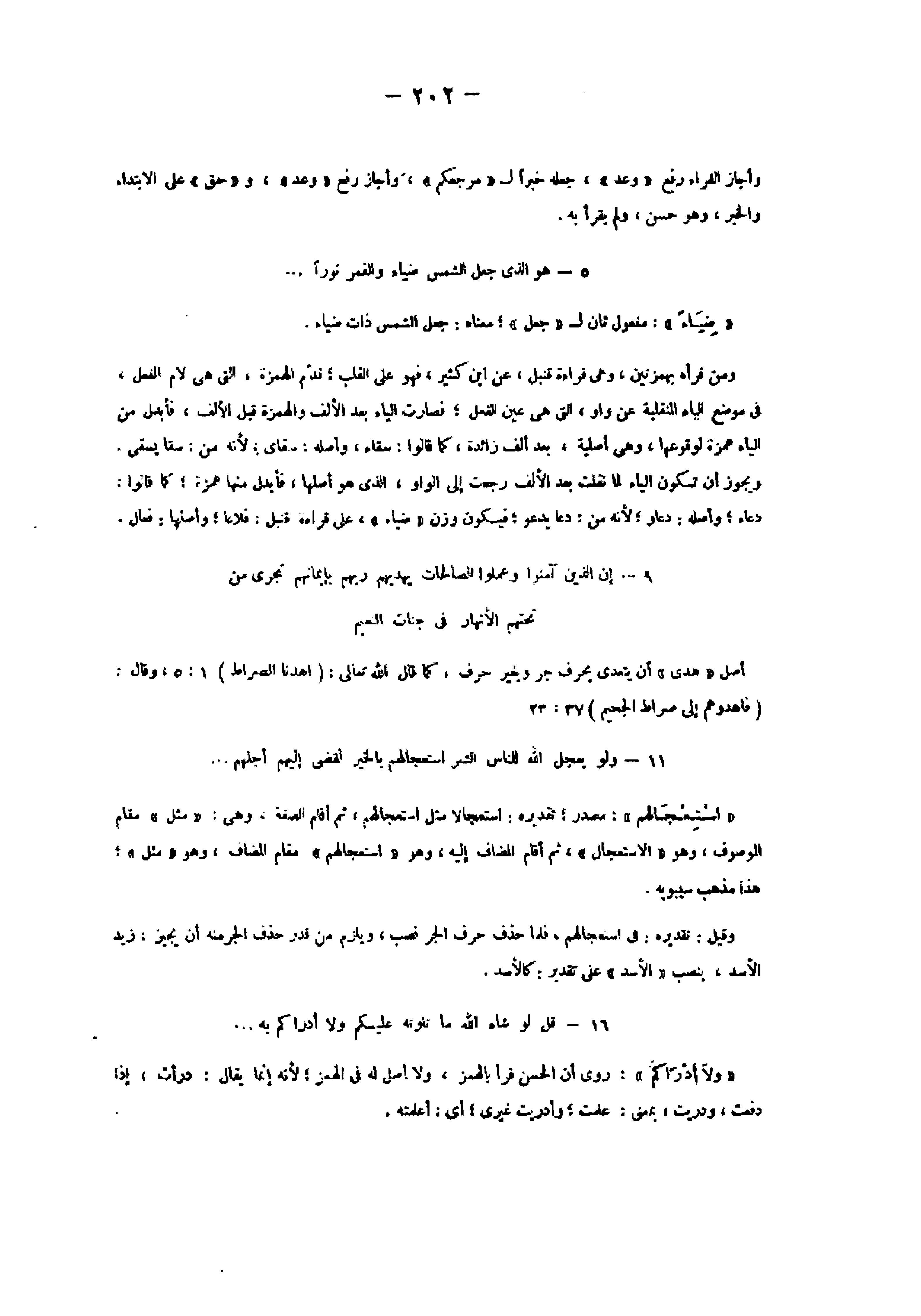 9- إِنَّ الَّذِينَ آمَنُوا وَعَمِلُوا الصَّالِحاتِ يَهْدِيهِمْ رَبُّهُمْ بِإِيمانِهِمْ تَجْرِي مِنْ تَحْتِهِمُ الْأَنْهارُ فِي جَنَّاتِ النَّعِيمِ أصل «هدى» أن يتعدى بحرف جر وبغير حرف، كما قال الله تعالى: (اهْدِنَا الصِّراطَ) 1: 5، وقال: