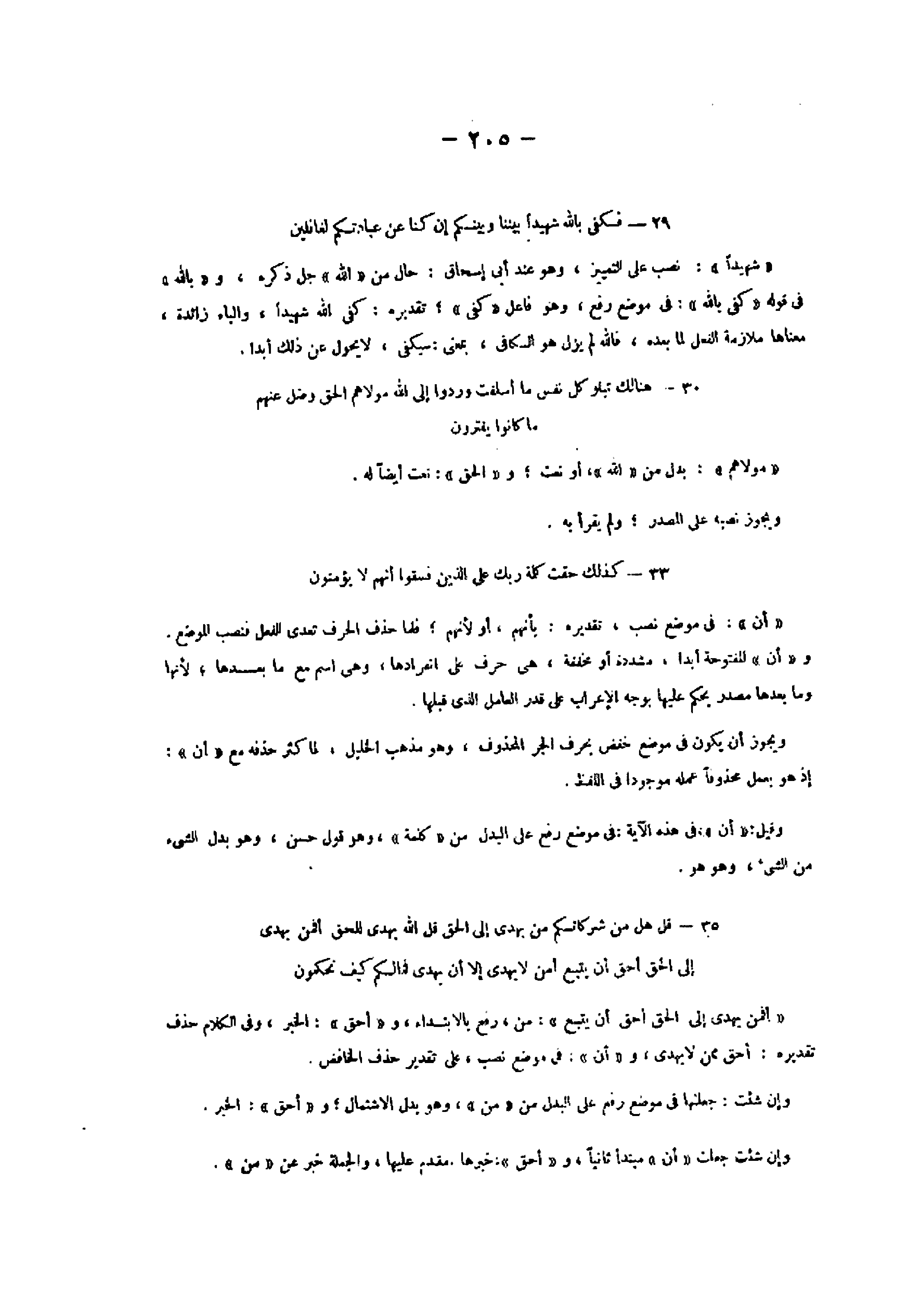 33- كَذلِكَ حَقَّتْ كَلِمَةُ رَبِّكَ عَلَى الَّذِينَ فَسَقُوا أَنَّهُمْ لا يُؤْمِنُونَ «أن» : فى موضع نصب، تقديره: بأنهم، أو لأنهم فلما حذف الحرف تعدى الفعل فنصب الموضع.