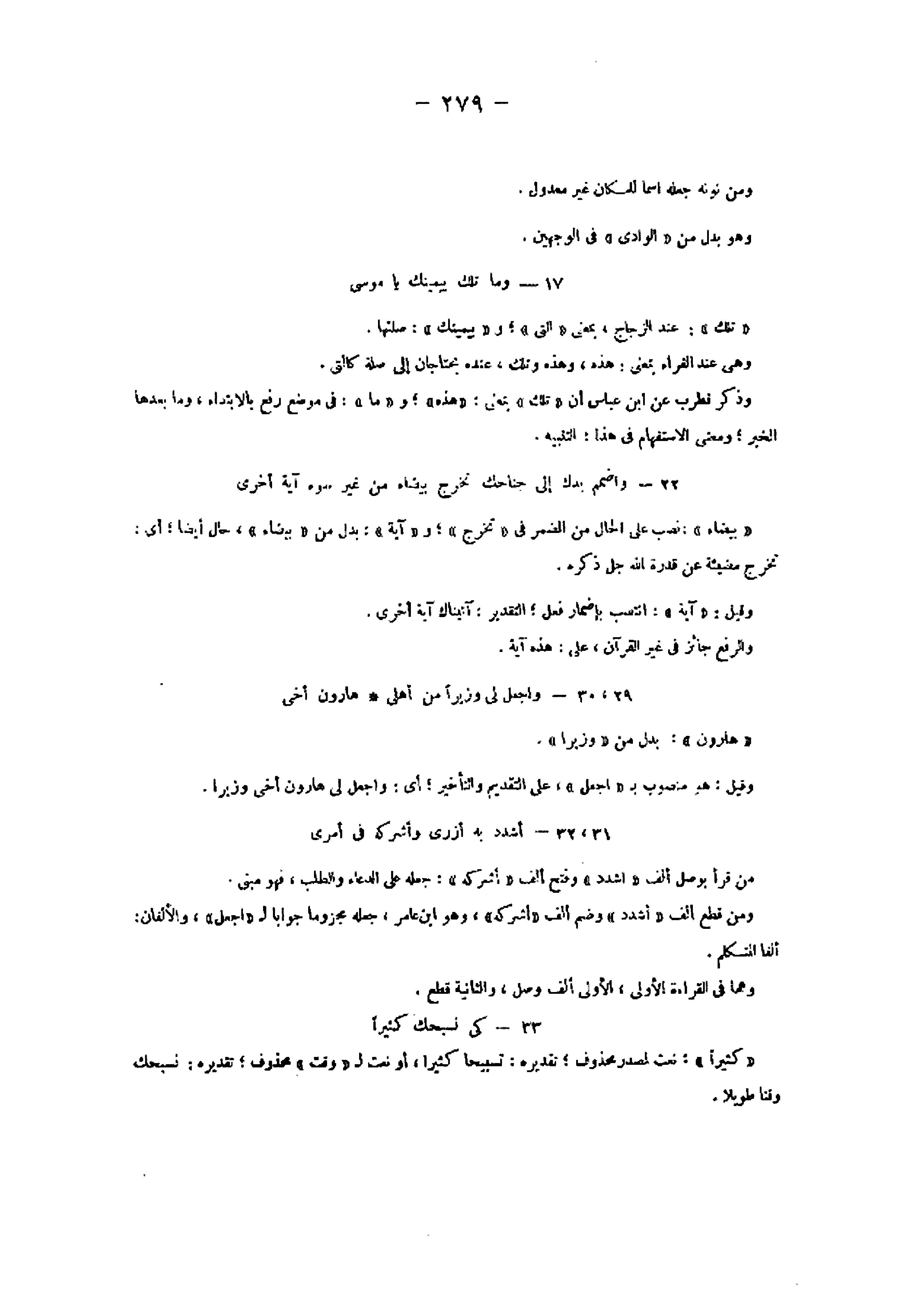 33- كَيْ نُسَبِّحَكَ كَثِيراً «كثيرا» : نعت لمصدر محذوف تقديره: تسبيحا كثيرا، أو نعت ل «وقت» محذوف تقديره: نسبحك وقتا طويلا.