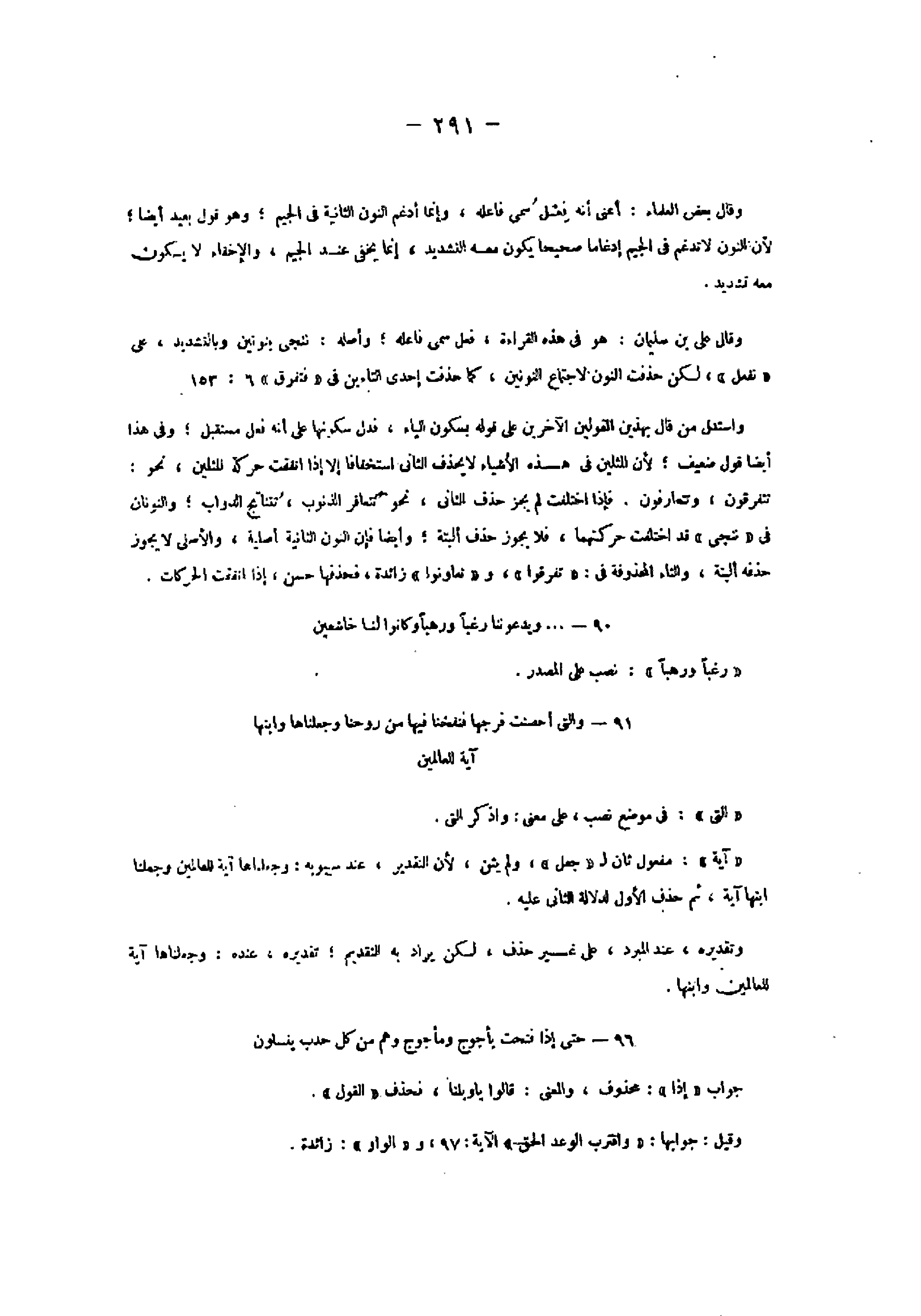 90- ... وَيَدْعُونَنا رَغَباً وَرَهَباً وَكانُوا لَنا خاشِعِينَ «رغبا ورهبا» : نصب على المصدر.