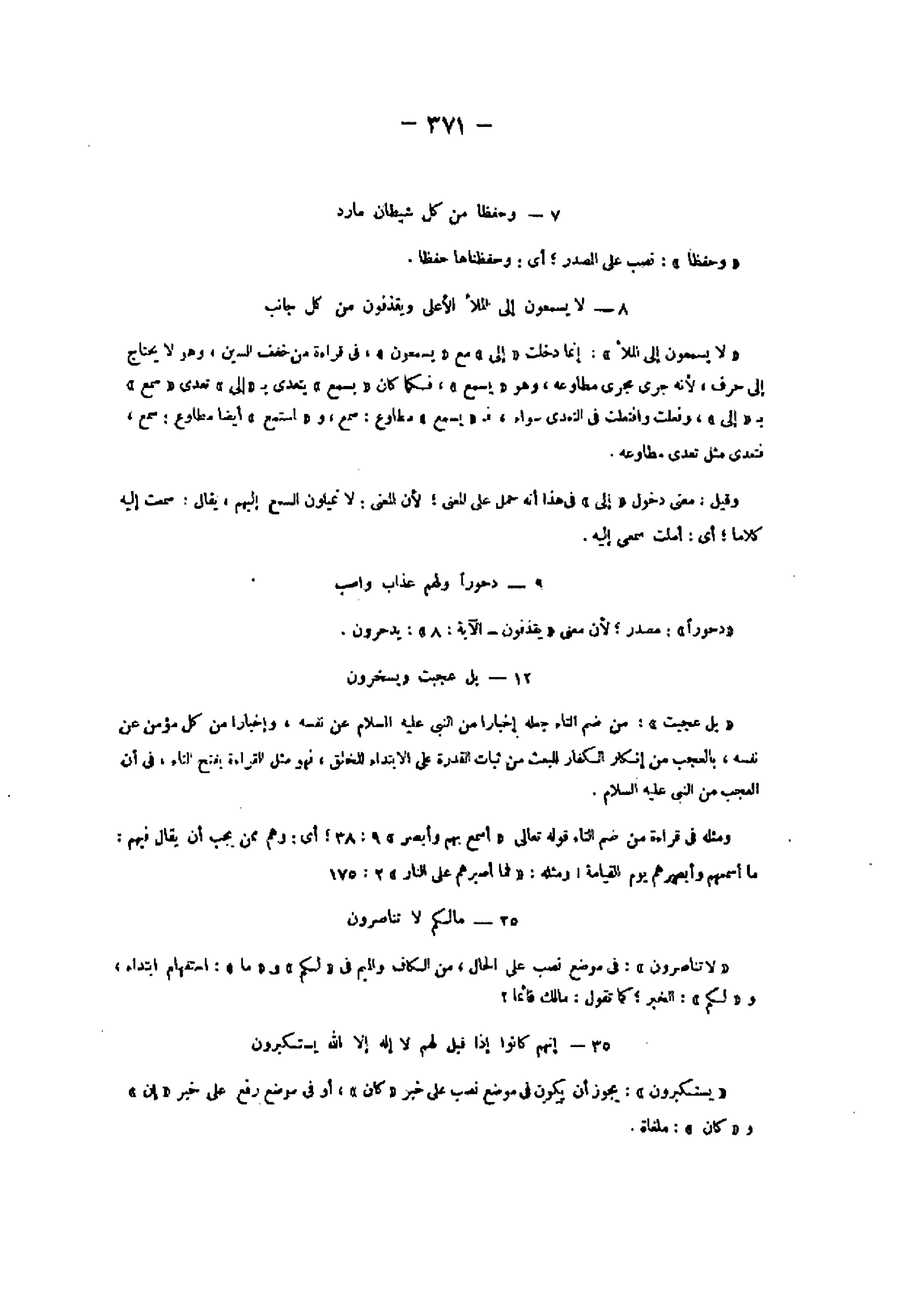 7- وَحِفْظاً مِنْ كُلِّ شَيْطانٍ مارِدٍ «وحفظا» : نصب على المصدر أي: وحفظناها حفظا.