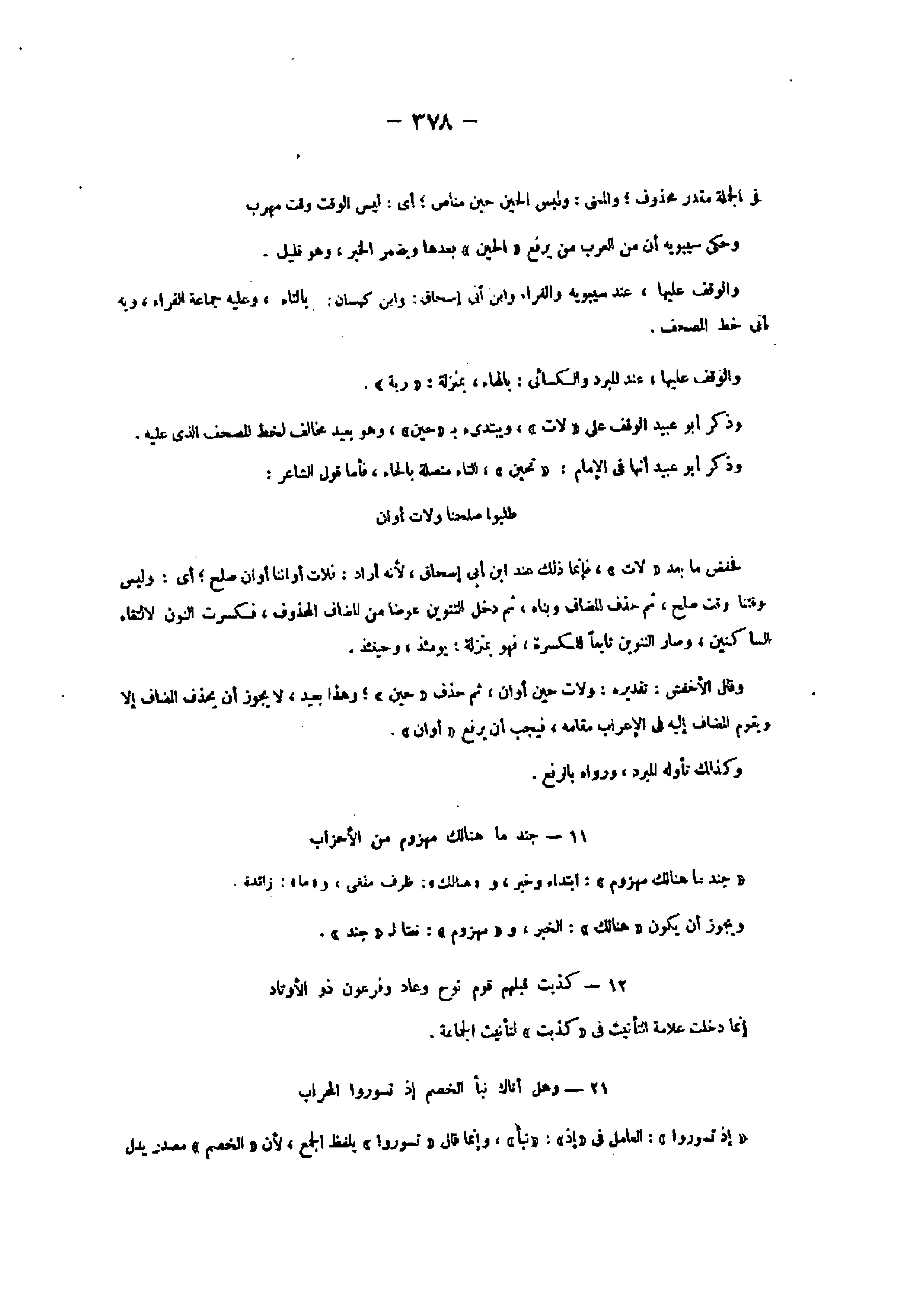 فى الجملة مقدر محذوف والمعنى: وليس الحين حين مناص أي: ليس الوقت وقت مهرب وحكى سيبويه أن من العرب من يرفع «الحين» بعدها ويضمر الخبر، وهو قليل.
