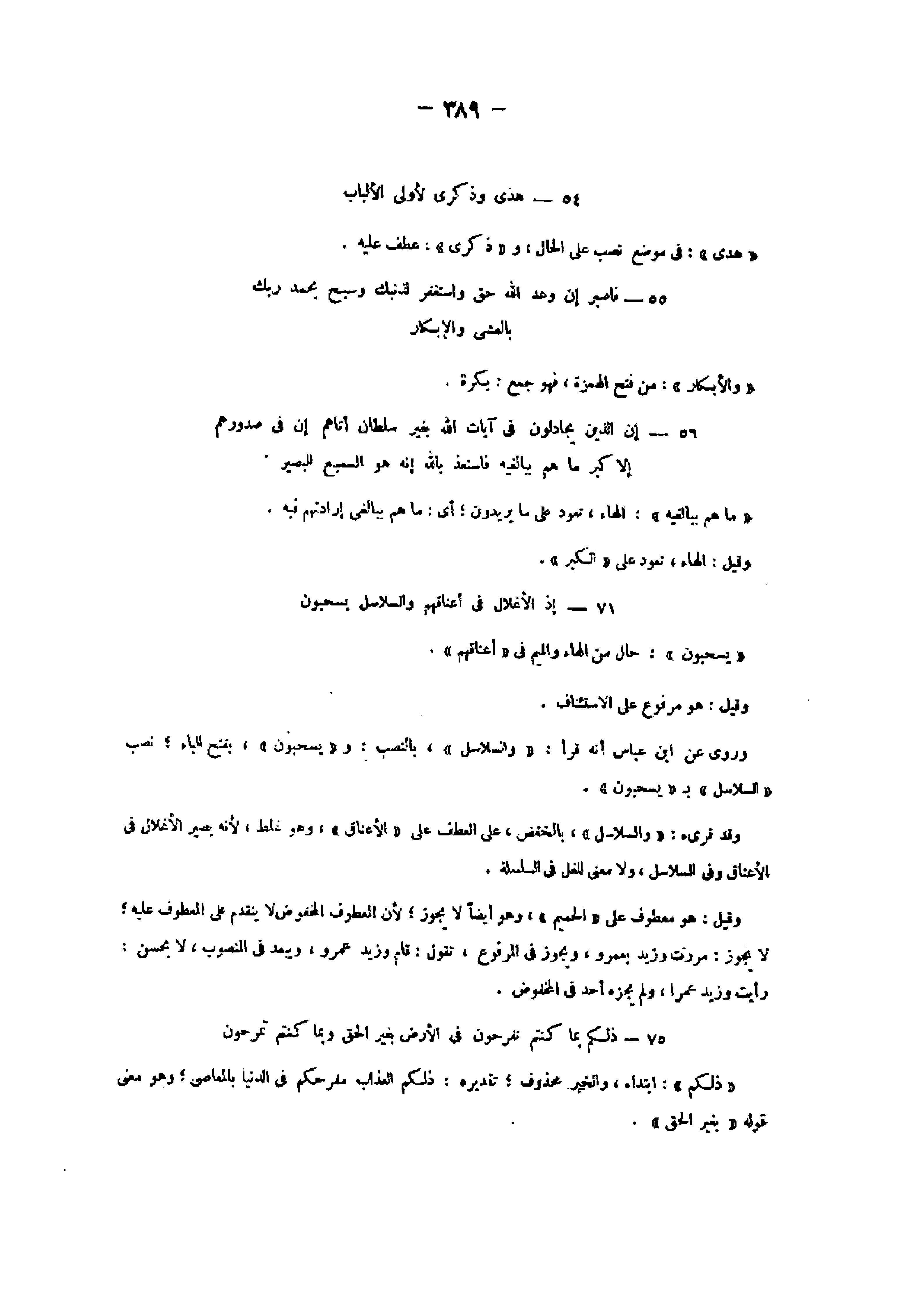 54- هُدىً وَذِكْرى لِأُولِي الْأَلْبابِ «هدى» : فى موضع نصب على الحال، و «ذكرى» : عطف عليه.