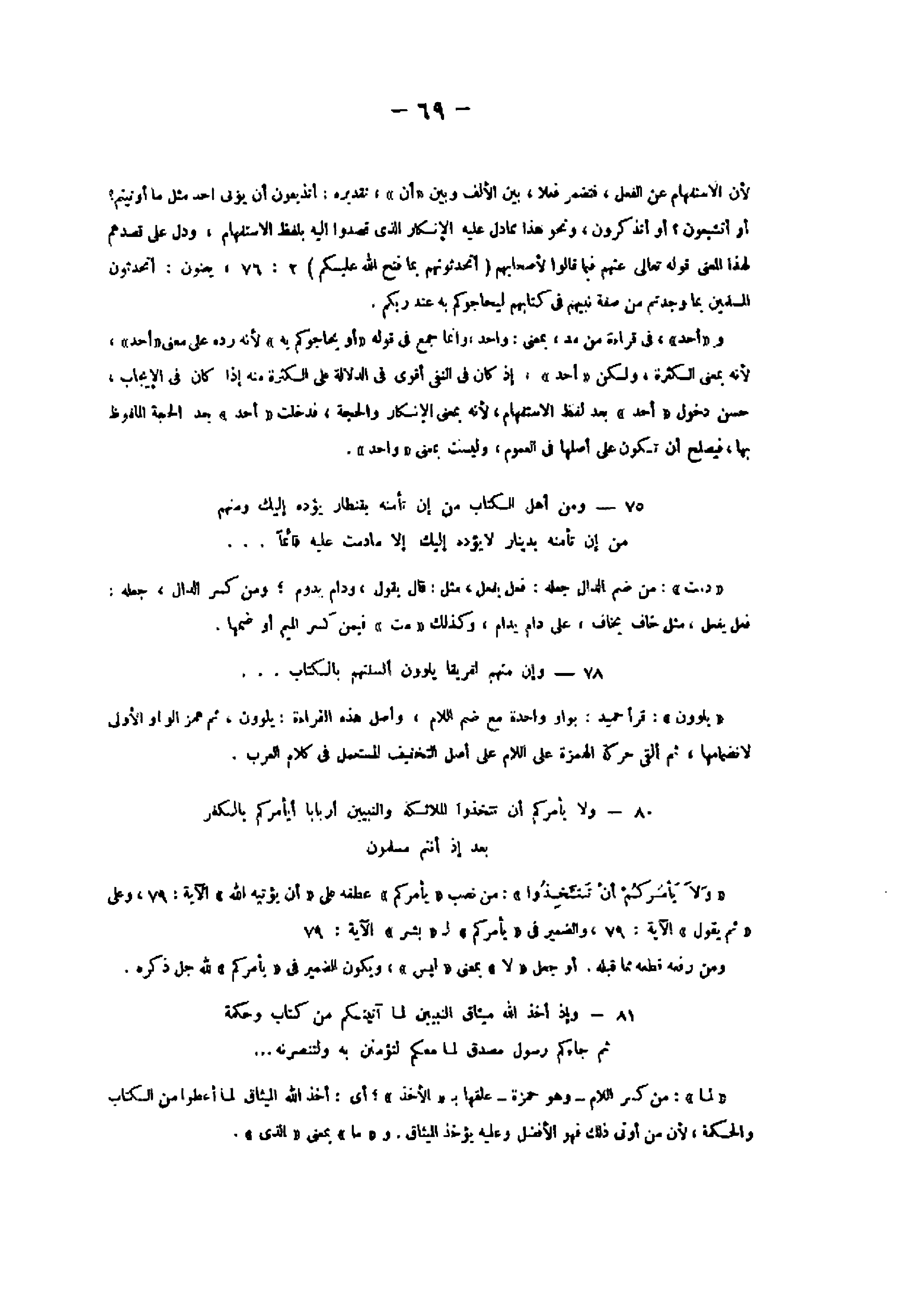 75- وَمِنْ أَهْلِ الْكِتابِ مَنْ إِنْ تَأْمَنْهُ بِقِنْطارٍ يُؤَدِّهِ إِلَيْكَ وَمِنْهُمْ مَنْ إِنْ تَأْمَنْهُ بِدِينارٍ لا يُؤَدِّهِ إِلَيْكَ إِلَّا ما دُمْتَ عَلَيْهِ قائِماً ...
