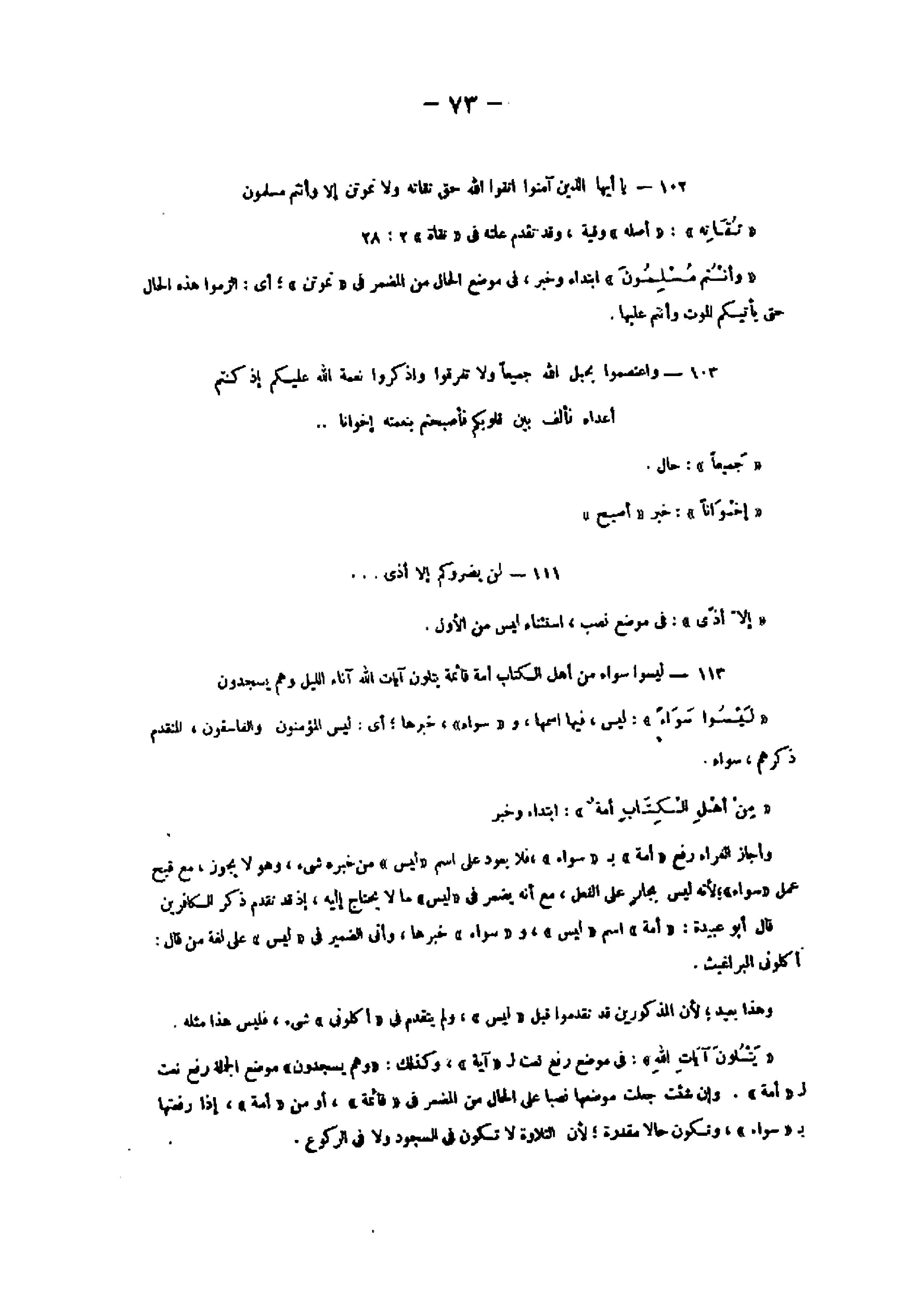 «إخوانا» : خبر «أصبح» 111- لَنْ يَضُرُّوكُمْ إِلَّا أَذىً ...