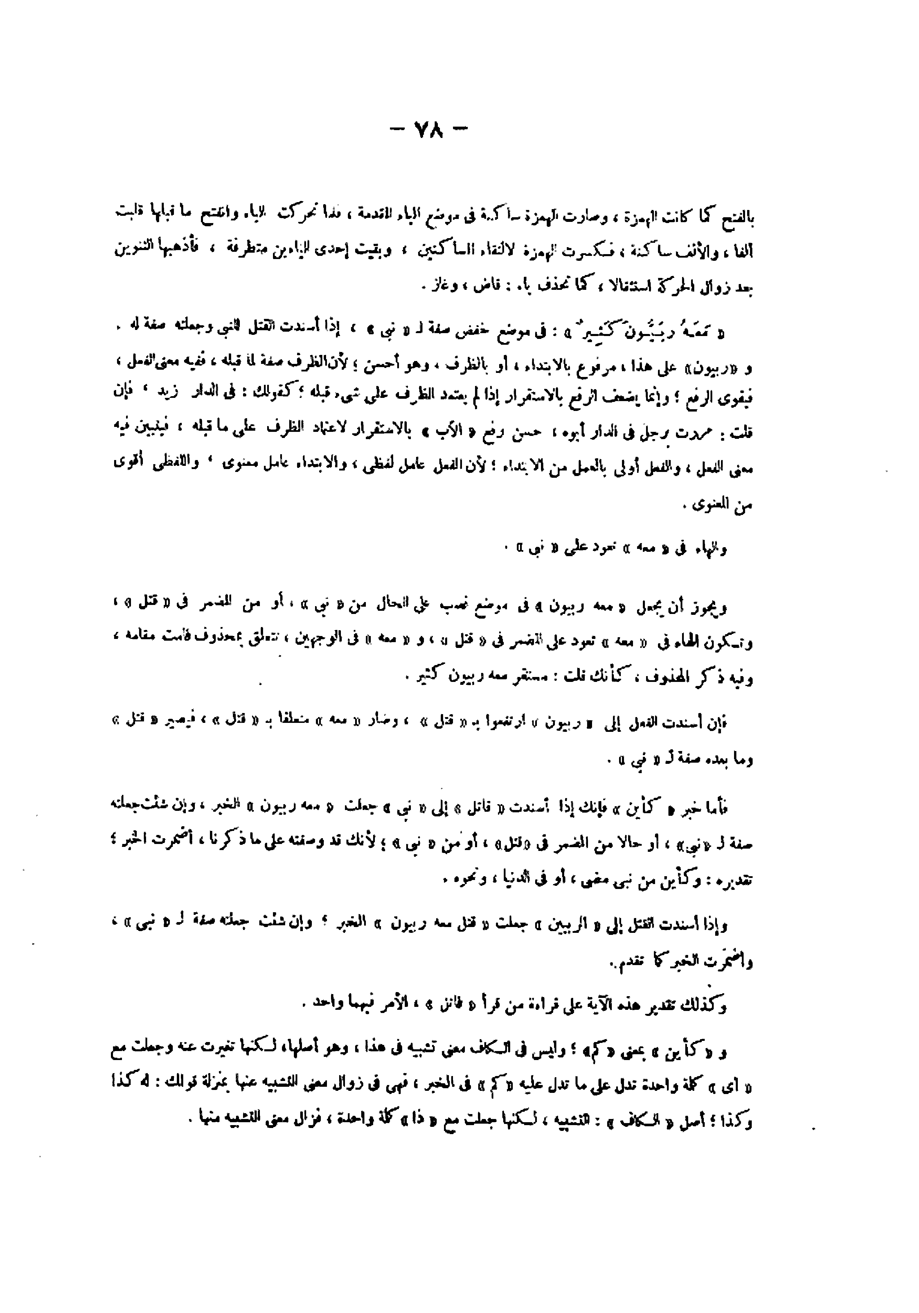 فإن أسندت الفعل إلى «ربيون» ارتفعوا ب «قتل» ، وضار «معه» متعلقا ب «قتل» ، فيصير «قتل» وما بعده صفة ل «نبى» .