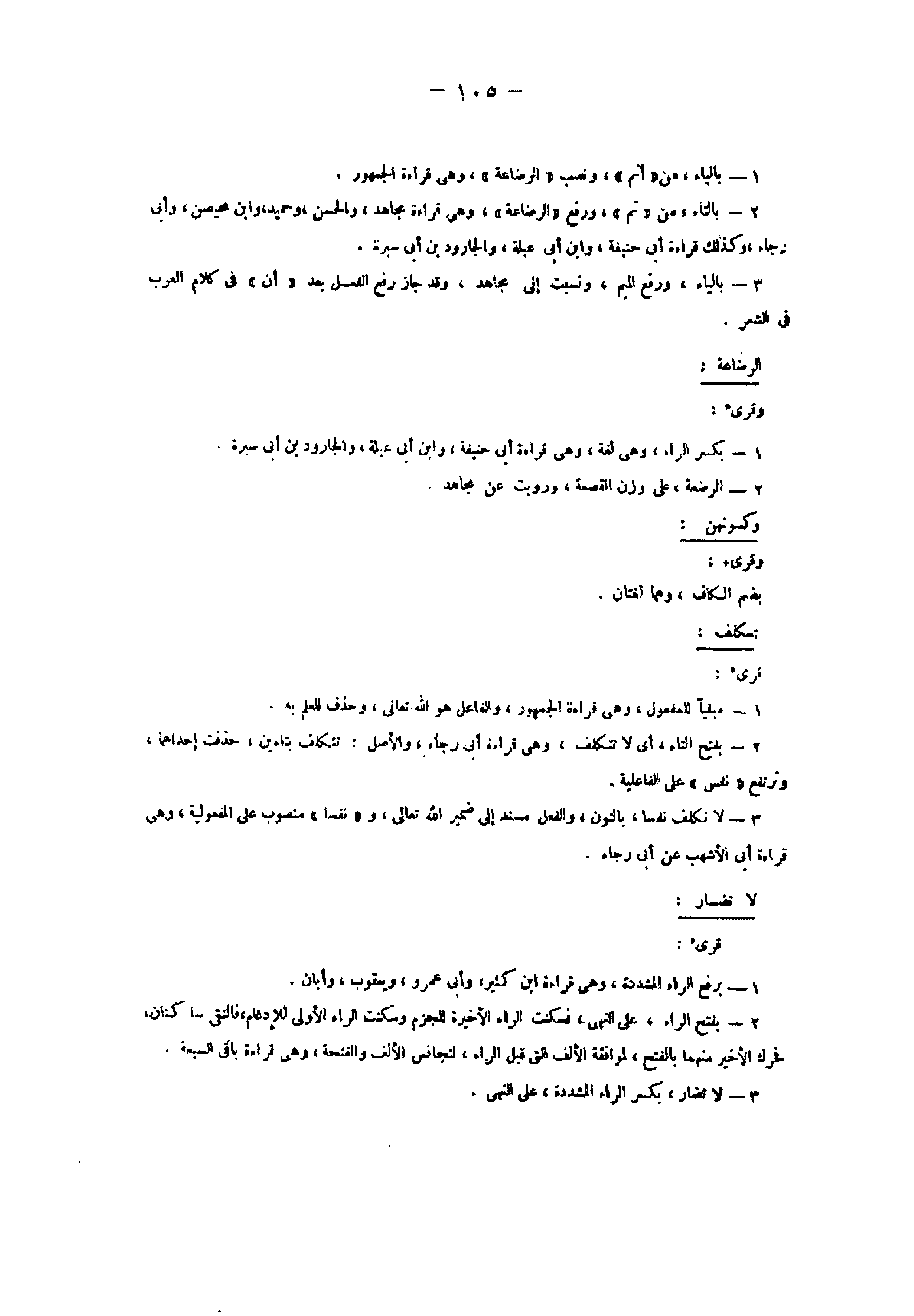 2- بالتاء، من «تم» ، ورفع «الرضاعة» ، وهى قراءة مجاهد، والحسن، وحميد، وابن محيصن، وأبى رجاء، وكذلك قراءة أبى حنيفة، وابن أبى عبلة، والجارود بن أبى سبرة.