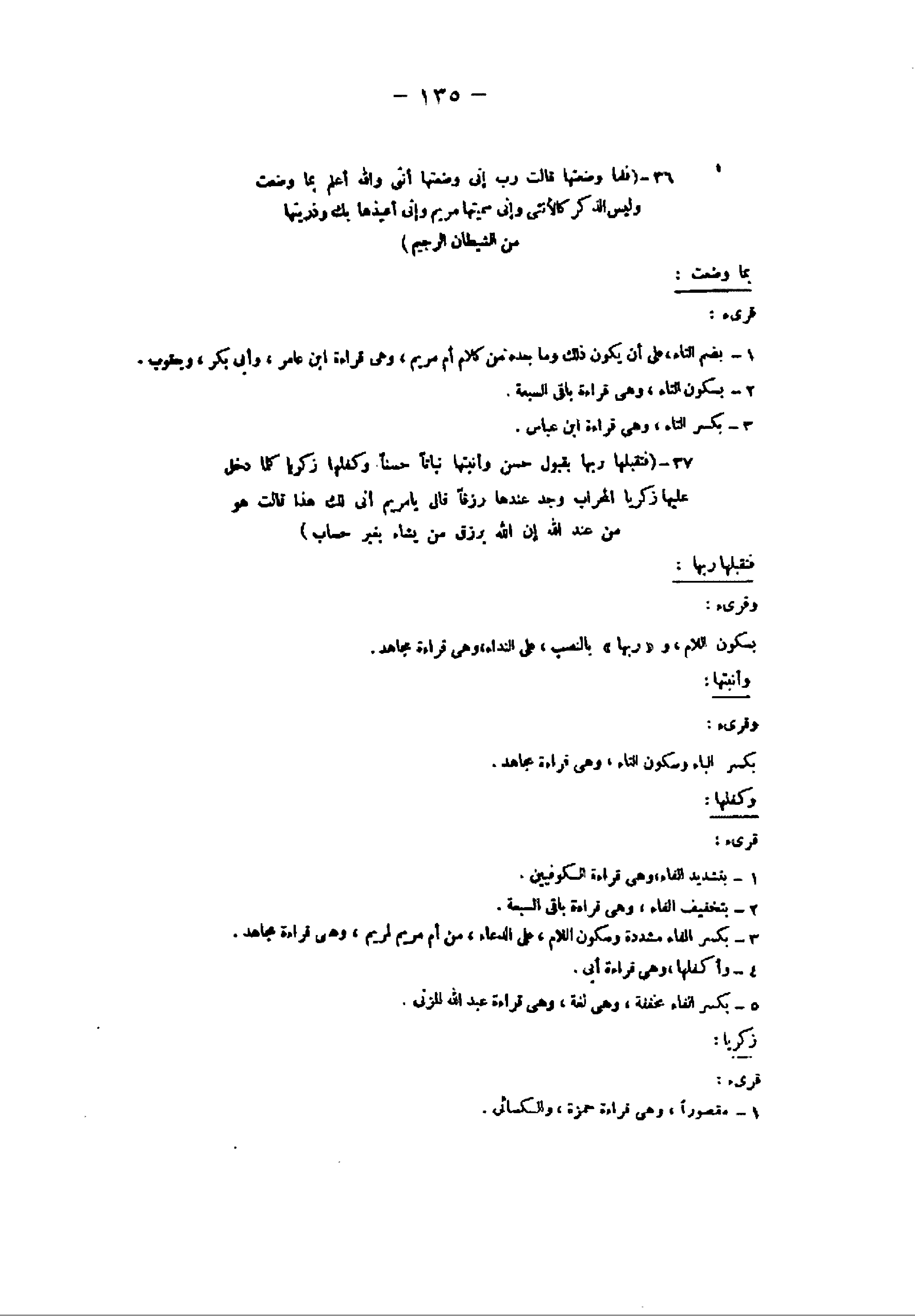 3- بكسر الفاء مشددة وسكون اللام، على الدعاء، من أم مريم لمريم، وهى قراءة مجاهد.