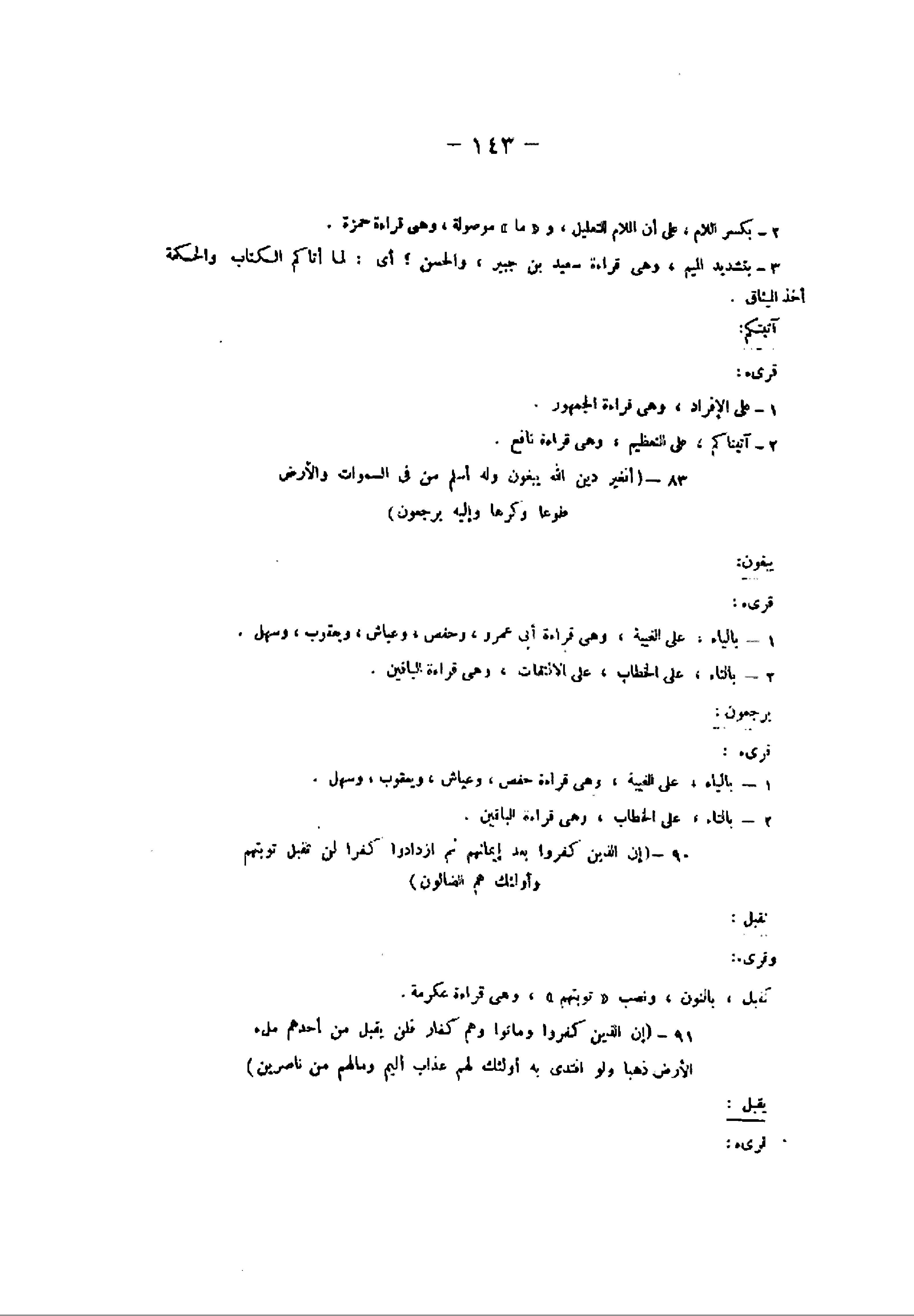 90- (إِنَّ الَّذِينَ كَفَرُوا بَعْدَ إِيمانِهِمْ ثُمَّ ازْدادُوا كُفْراً لَنْ تُقْبَلَ تَوْبَتُهُمْ وَأُولئِكَ هُمُ الضَّالُّونَ) تقبل: