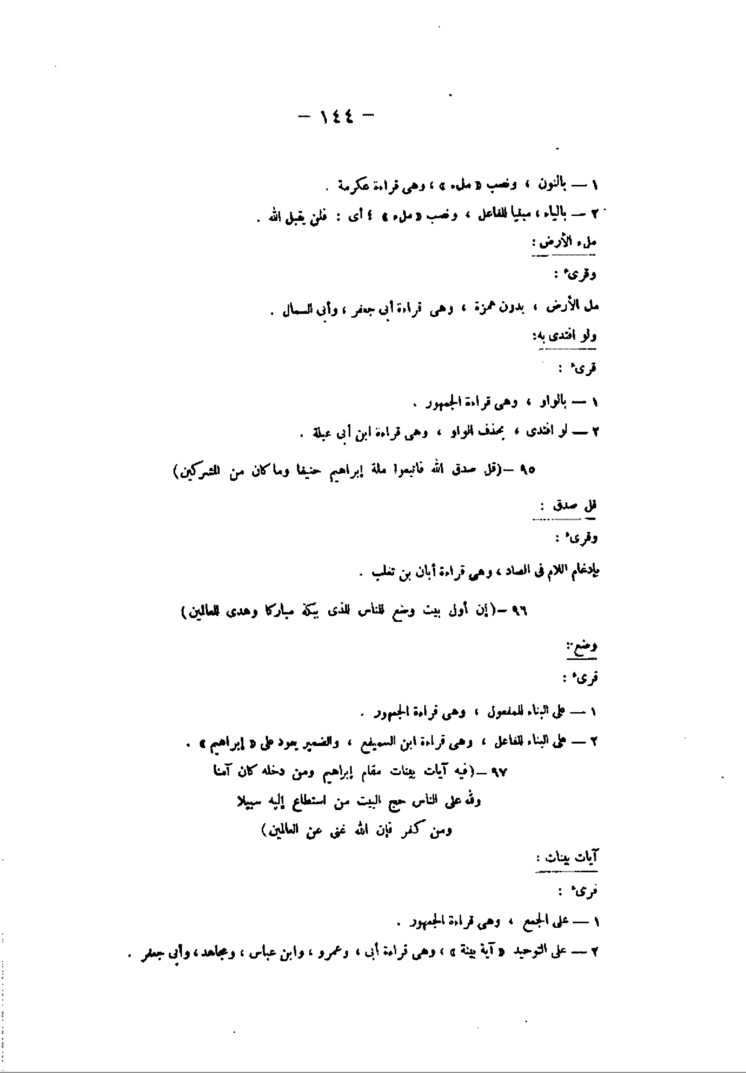 2- على التوحيد «آية بينة» ، وهى قراءة أبى، وعمرو، وابن عباس، ومجاهد، وأبى جعفر.