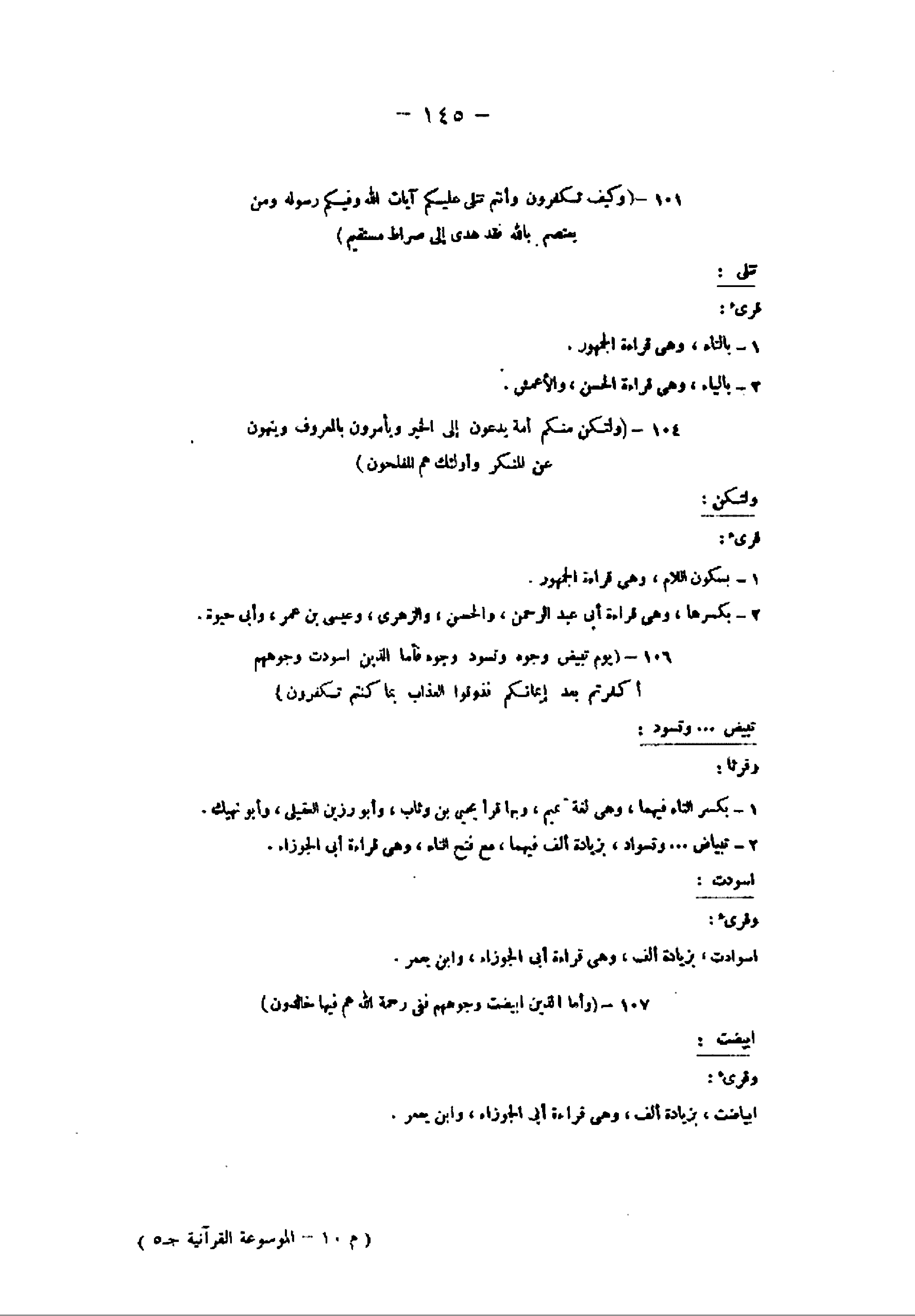 104- (وَلْتَكُنْ مِنْكُمْ أُمَّةٌ يَدْعُونَ إِلَى الْخَيْرِ وَيَأْمُرُونَ بِالْمَعْرُوفِ وَيَنْهَوْنَ عَنِ الْمُنْكَرِ وَأُولئِكَ هُمُ الْمُفْلِحُونَ) ولتكن: