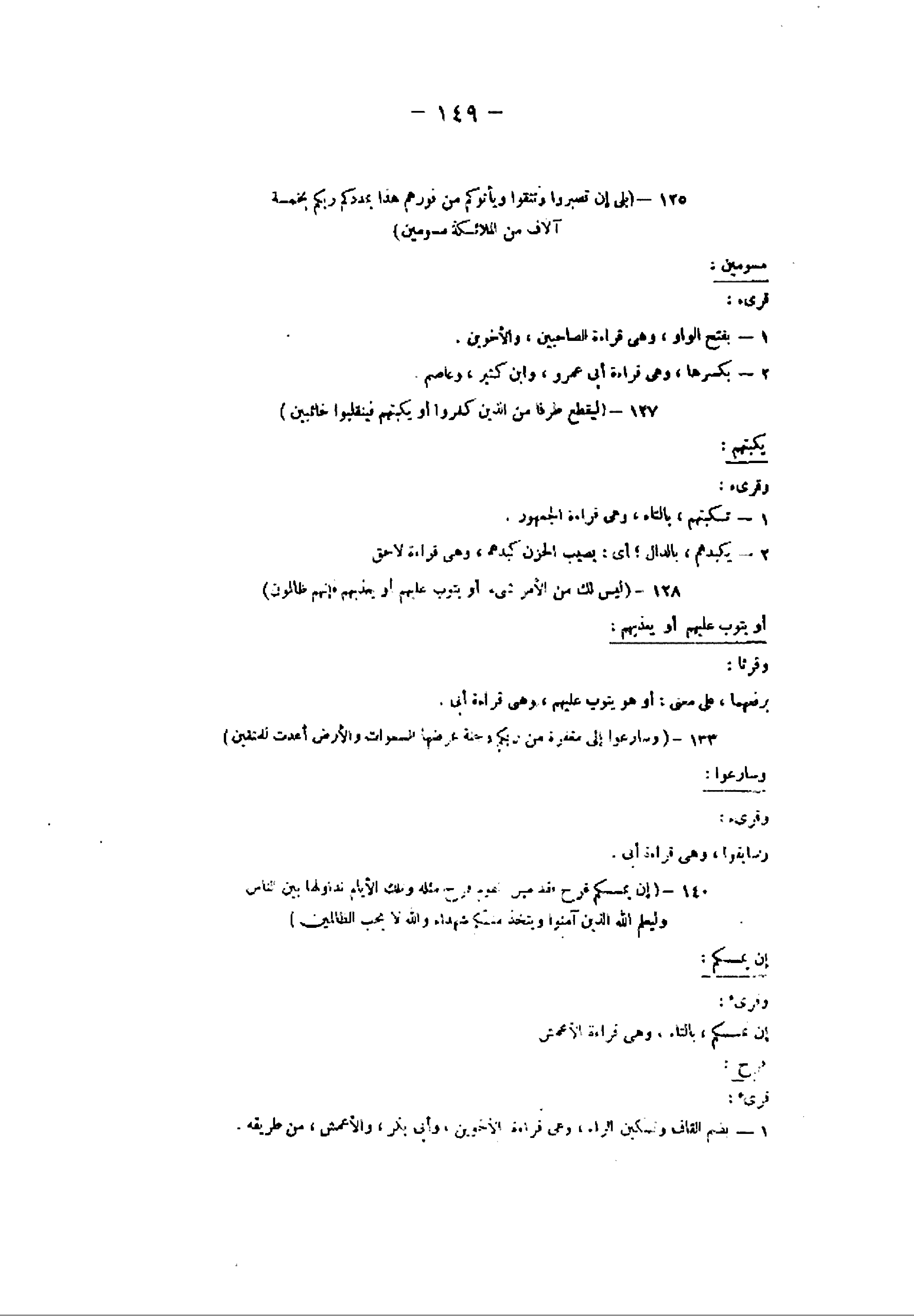 128- (لَيْسَ لَكَ مِنَ الْأَمْرِ شَيْءٌ أَوْ يَتُوبَ عَلَيْهِمْ أَوْ يُعَذِّبَهُمْ فَإِنَّهُمْ ظالِمُونَ) أو يتوب عليهم أو يعذبهم: