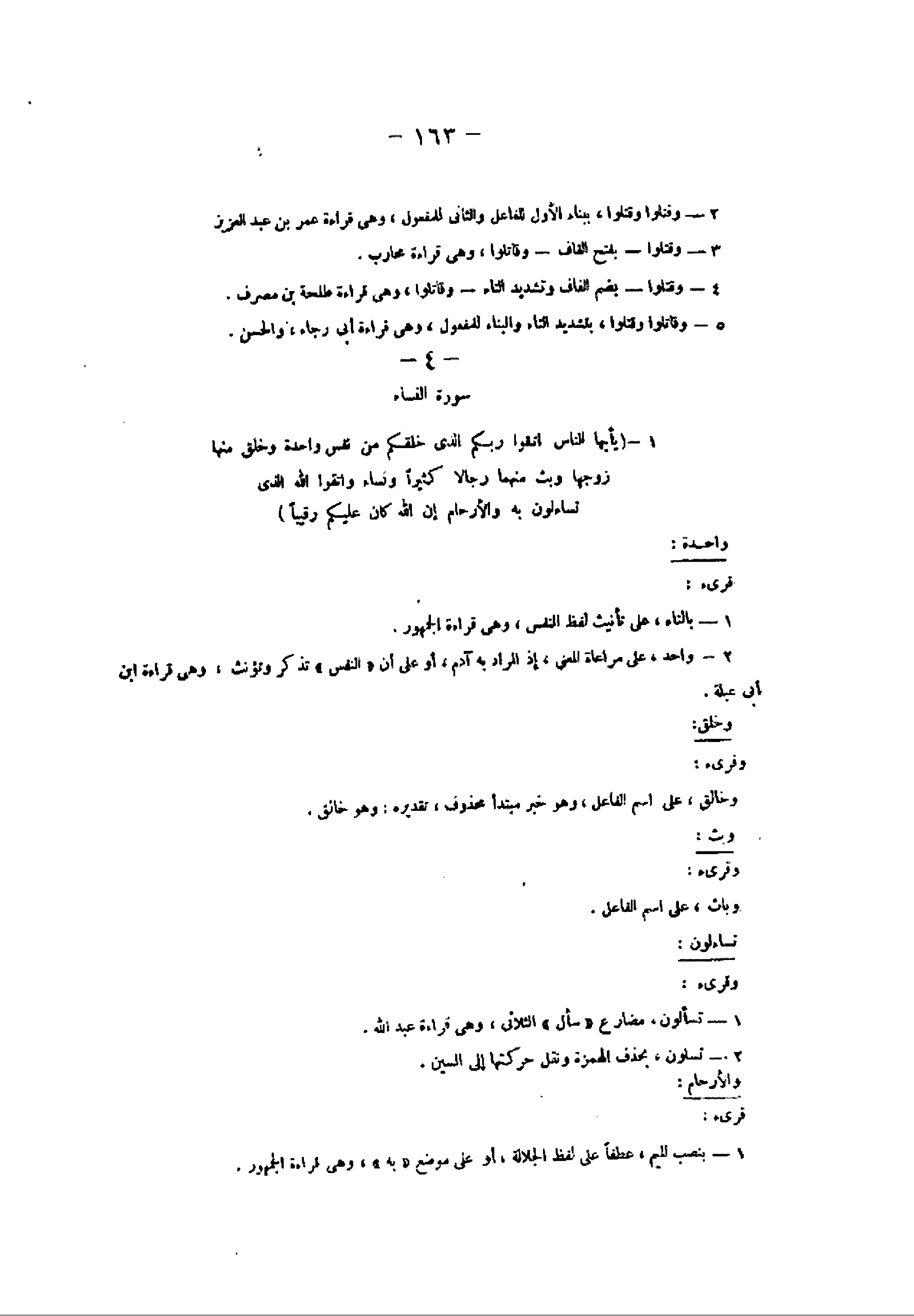 1- (يا أَيُّهَا النَّاسُ اتَّقُوا رَبَّكُمُ الَّذِي خَلَقَكُمْ مِنْ نَفْسٍ واحِدَةٍ وَخَلَقَ مِنْها زَوْجَها وَبَثَّ مِنْهُما رِجالًا كَثِيراً وَنِساءً وَاتَّقُوا اللَّهَ الَّذِي تَسائَلُونَ بِهِ وَالْأَرْحامَ إِنَّ اللَّهَ كانَ عَلَيْكُمْ رَقِيباً) واحدة: