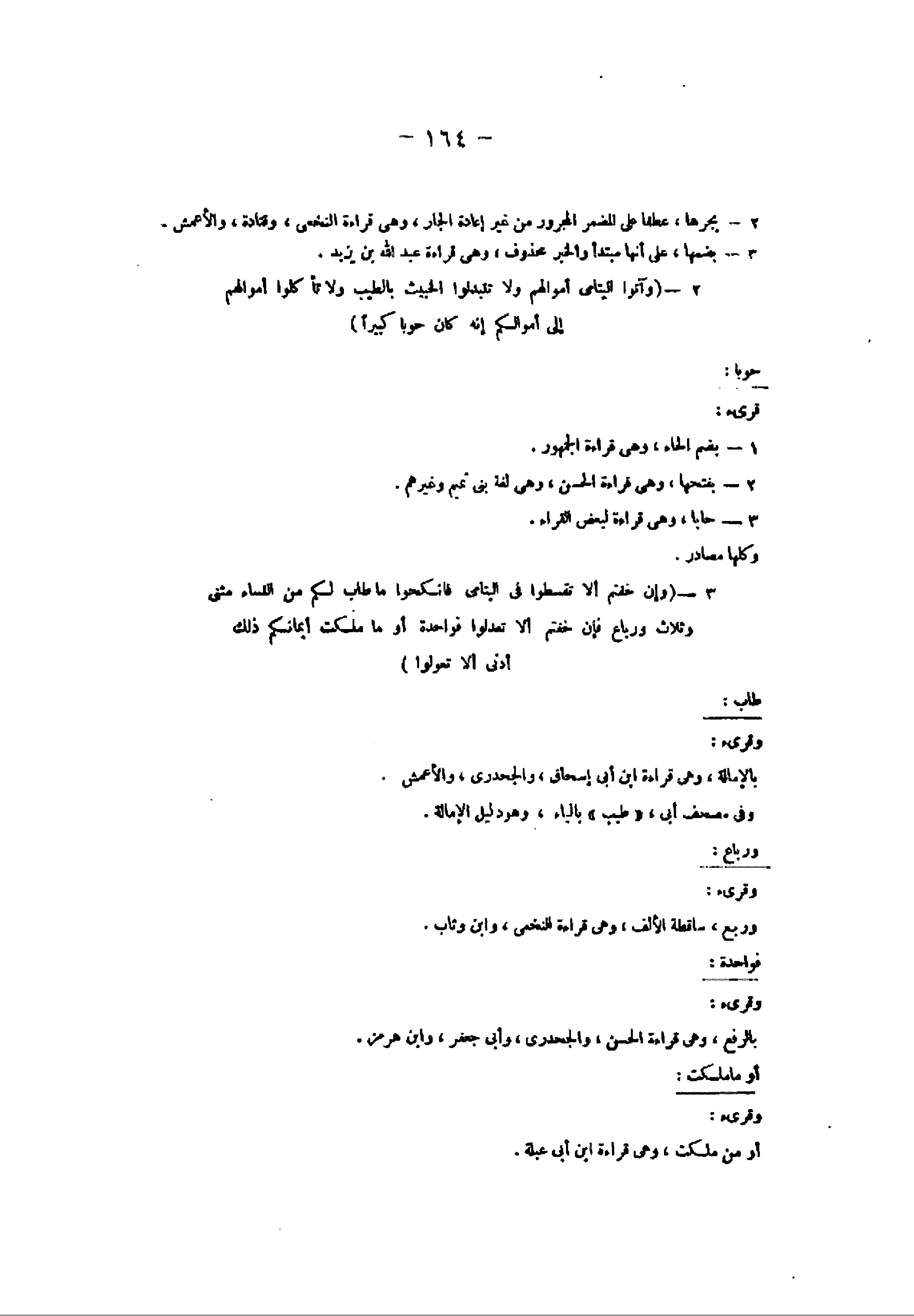 2- (وَآتُوا الْيَتامى أَمْوالَهُمْ وَلا تَتَبَدَّلُوا الْخَبِيثَ بِالطَّيِّبِ وَلا تَأْكُلُوا أَمْوالَهُمْ إِلى أَمْوالِكُمْ إِنَّهُ كانَ حُوباً كَبِيراً) حوبا: