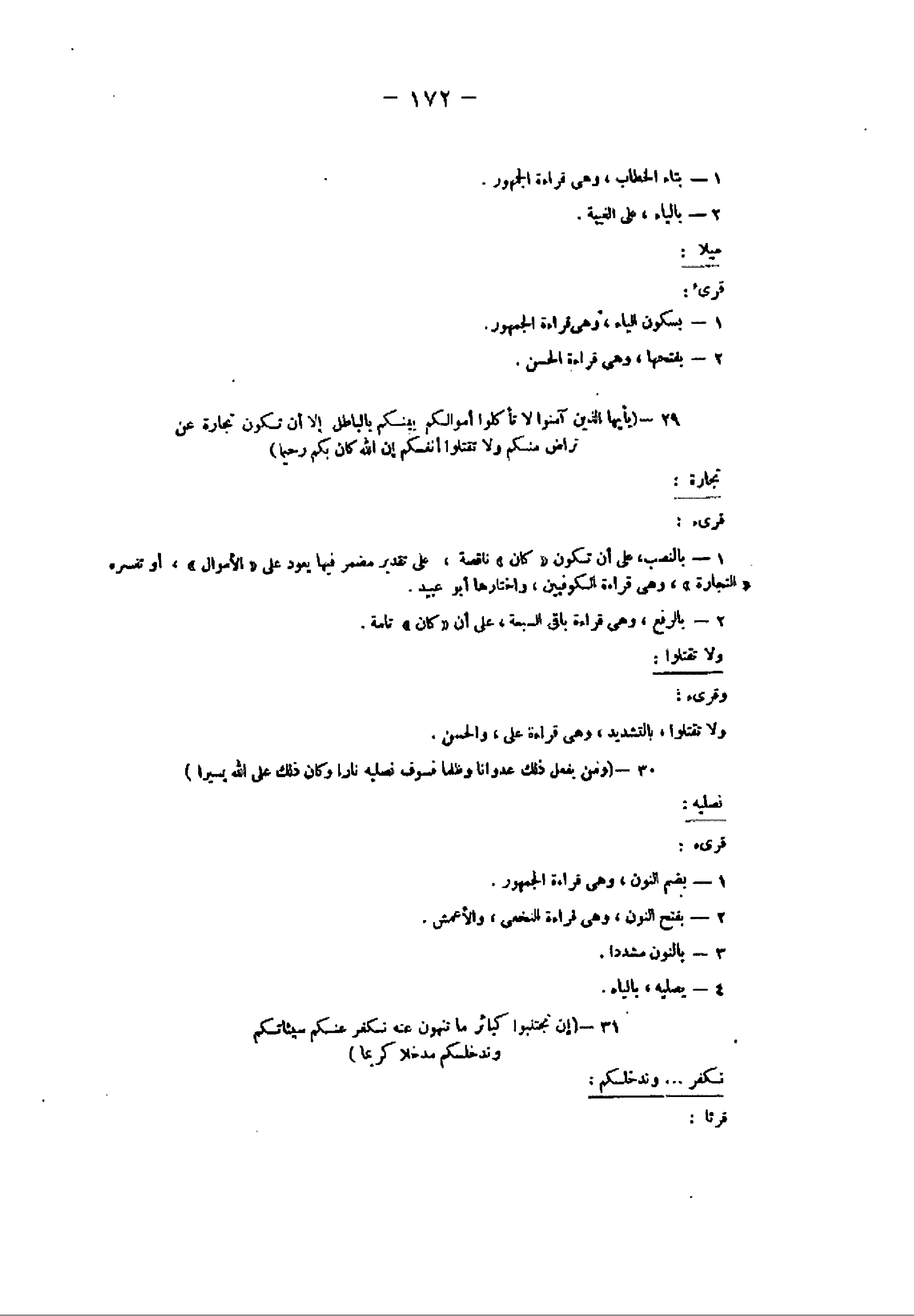 1- بالنصب، على أن تكون «كان» ناقصة، على تقدير مضمر فيها يعود على «الأموال» ، أو تفسره «التجارة» ، وهى قراءة الكوفيين، وأختارها أبو عبيد.