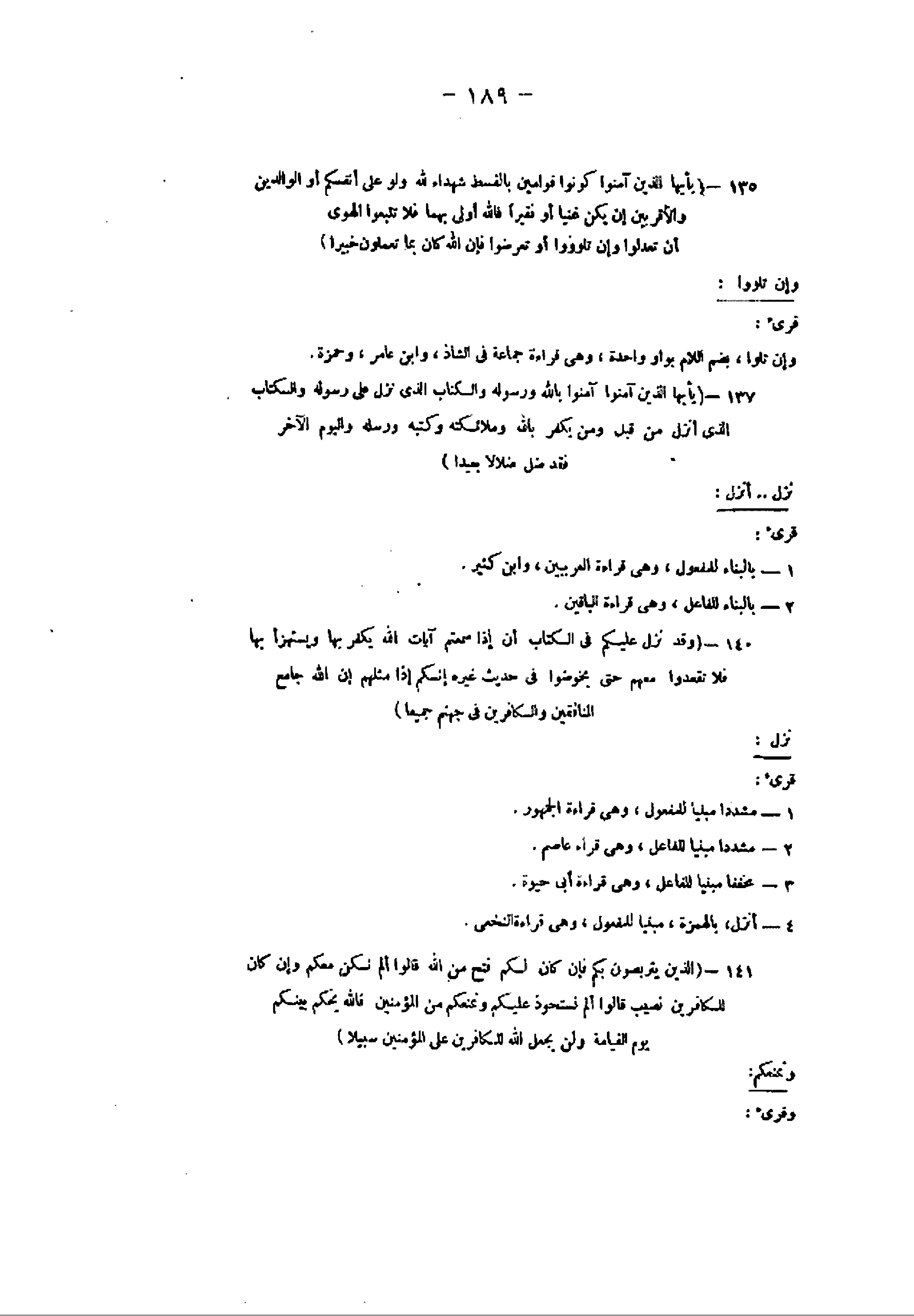 137- (يا أَيُّهَا الَّذِينَ آمَنُوا آمِنُوا بِاللَّهِ وَرَسُولِهِ وَالْكِتابِ الَّذِي نَزَّلَ عَلى رَسُولِهِ وَالْكِتابِ الَّذِي أَنْزَلَ مِنْ قَبْلُ وَمَنْ يَكْفُرْ بِاللَّهِ وَمَلائِكَتِهِ وَكُتُبِهِ وَرُسُلِهِ وَالْيَوْمِ الْآخِرِ فَقَدْ ضَلَّ ضَلالًا بَعِيداً) نزل ... أنزل: