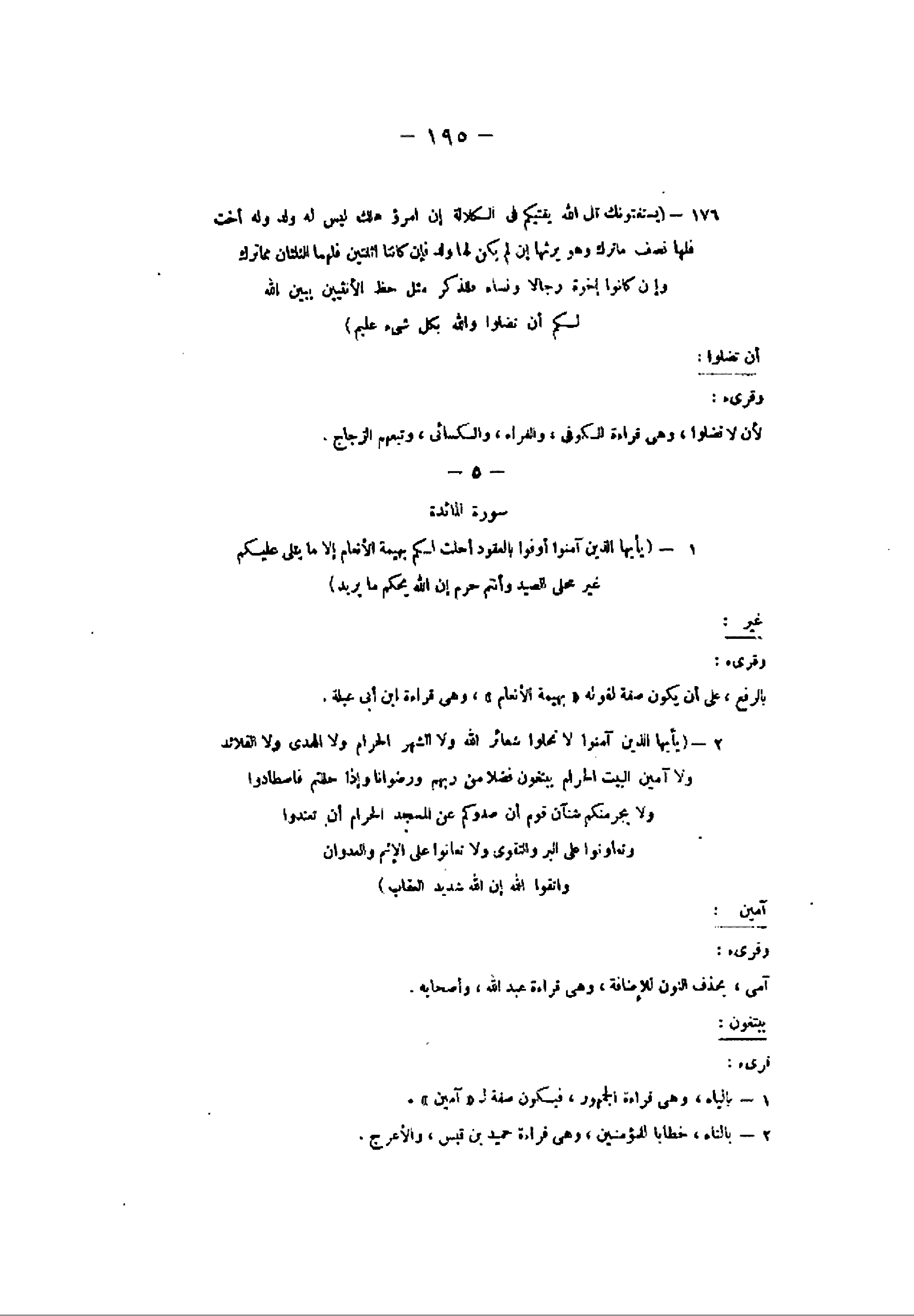 1- (يا أَيُّهَا الَّذِينَ آمَنُوا أَوْفُوا بِالْعُقُودِ أُحِلَّتْ لَكُمْ بَهِيمَةُ الْأَنْعامِ إِلَّا ما يُتْلى عَلَيْكُمْ غَيْرَ مُحِلِّي الصَّيْدِ وَأَنْتُمْ حُرُمٌ إِنَّ اللَّهَ يَحْكُمُ ما يُرِيدُ) غير: