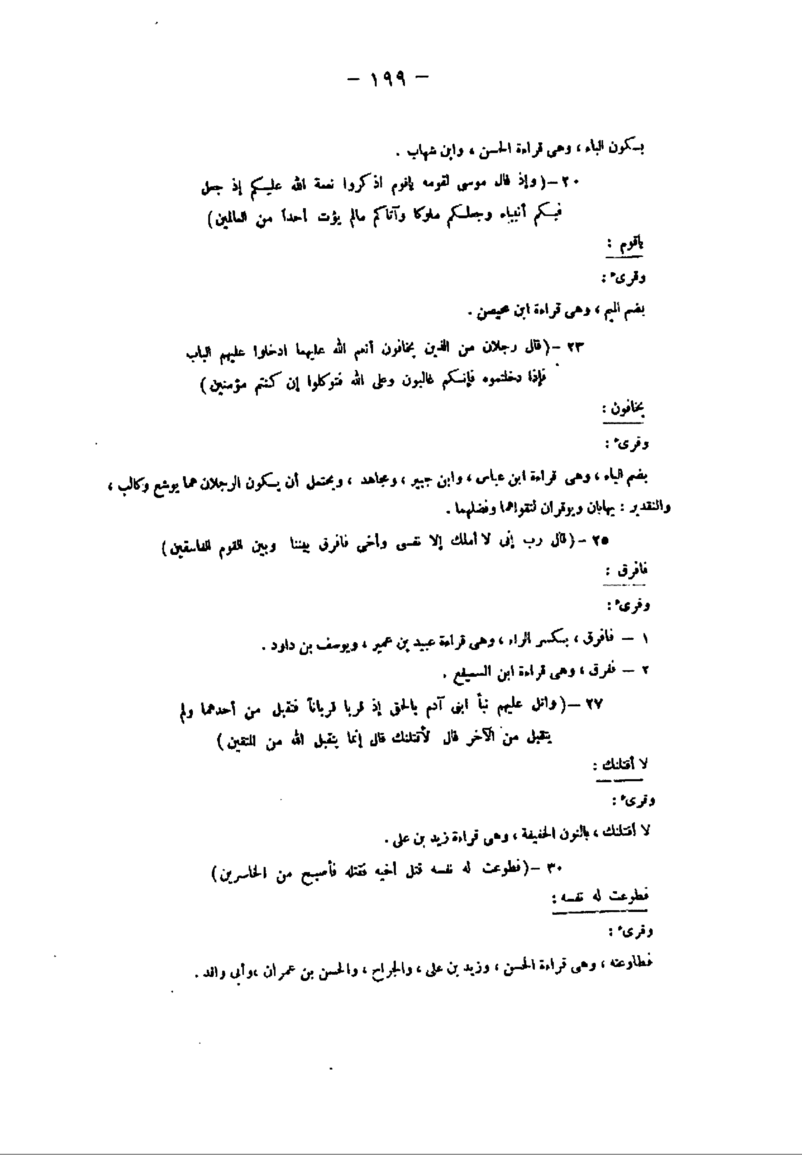 1- فافرق، بكسر الراء، وهى قراءة عبيد بن عمير، ويوسف بن داود.