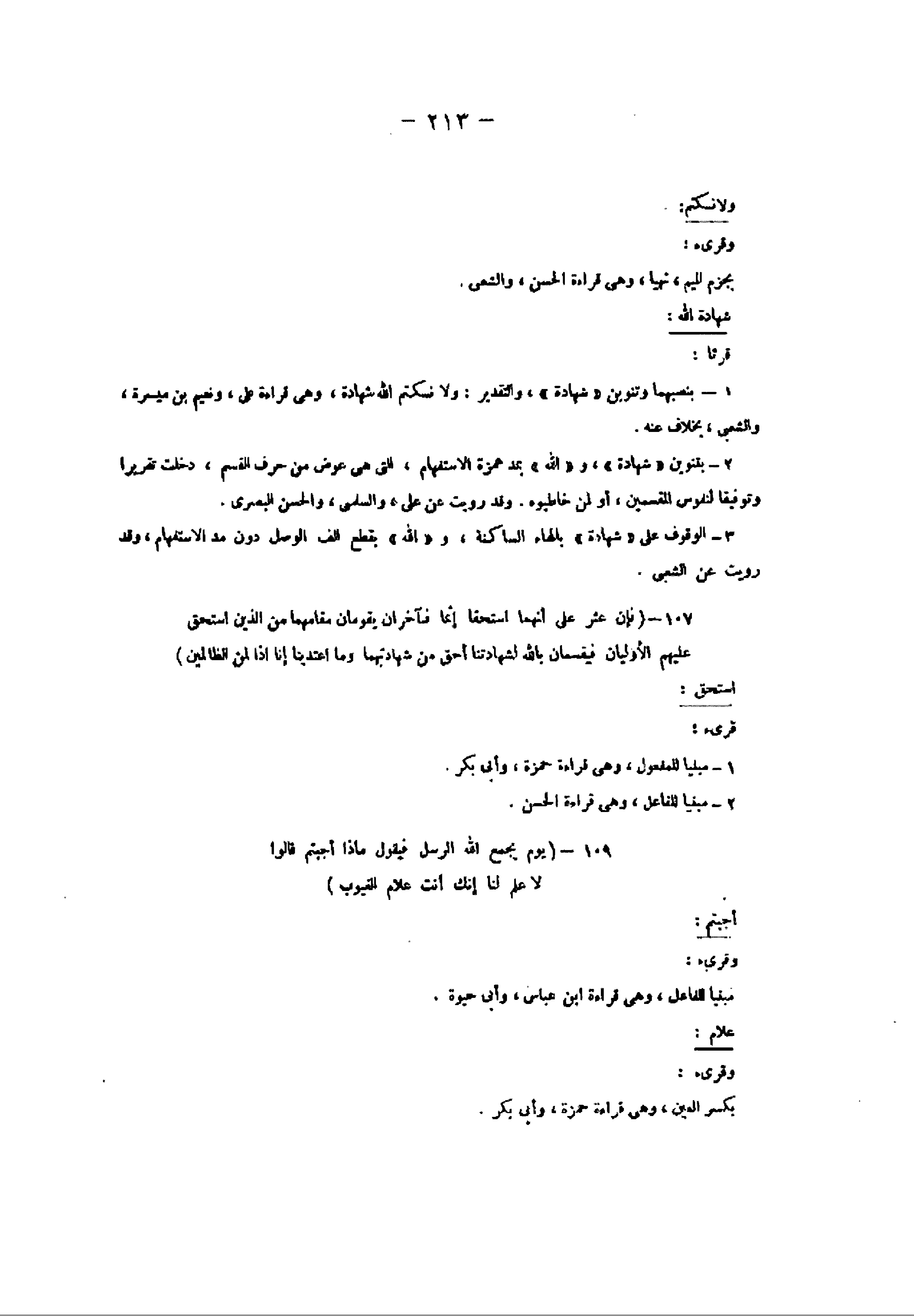 3- الوقوف على «شهادة» بالهاء الساكنة، و «الله» بقطع الف الوصل دون مد الاستفهام، وقد رويت عن الشعبي.