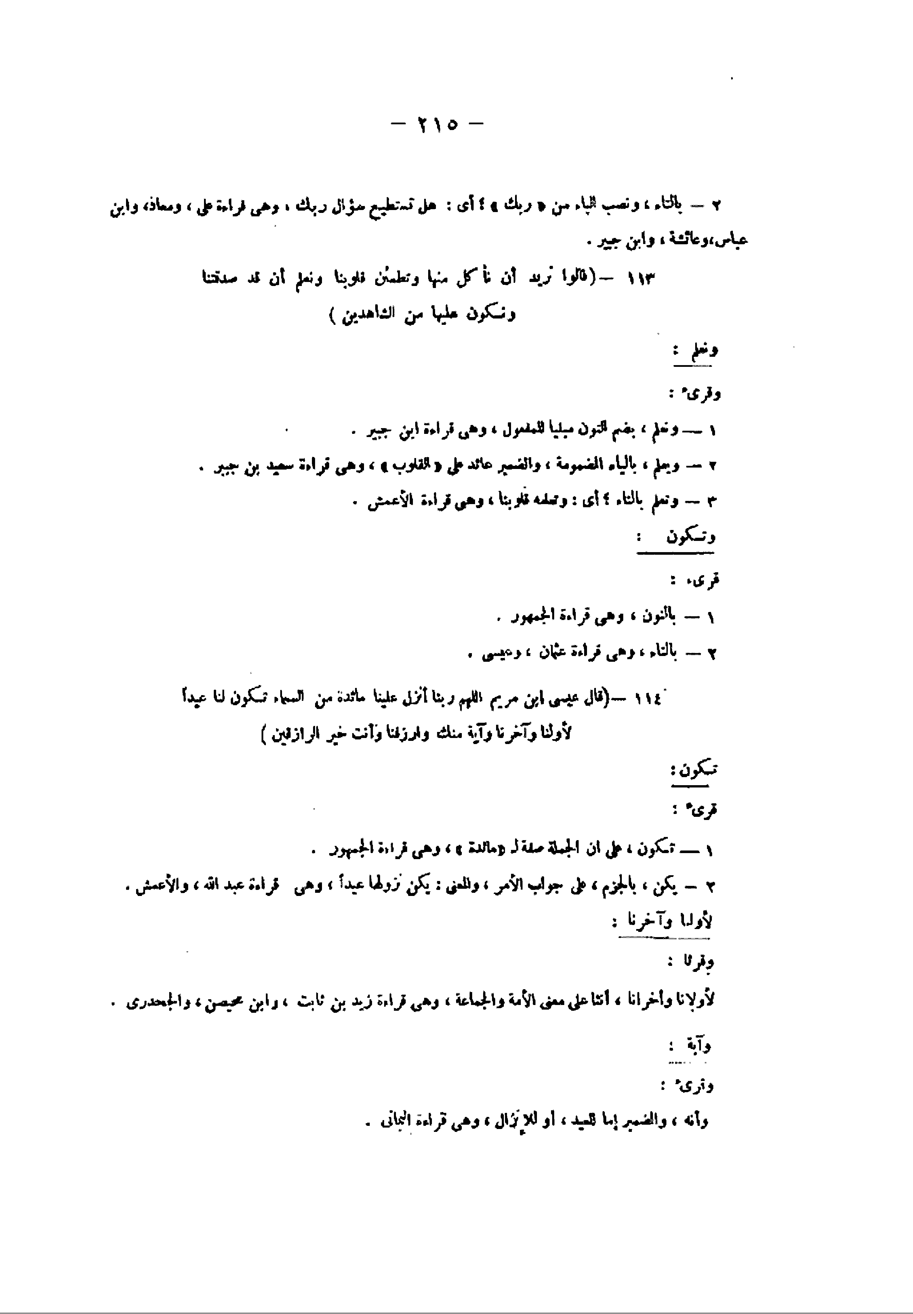 114- (قالَ عِيسَى ابْنُ مَرْيَمَ اللَّهُمَّ رَبَّنا أَنْزِلْ عَلَيْنا مائِدَةً مِنَ السَّماءِ تَكُونُ لَنا عِيداً لِأَوَّلِنا وَآخِرِنا وَآيَةً مِنْكَ وَارْزُقْنا وَأَنْتَ خَيْرُ الرَّازِقِينَ) تكون: