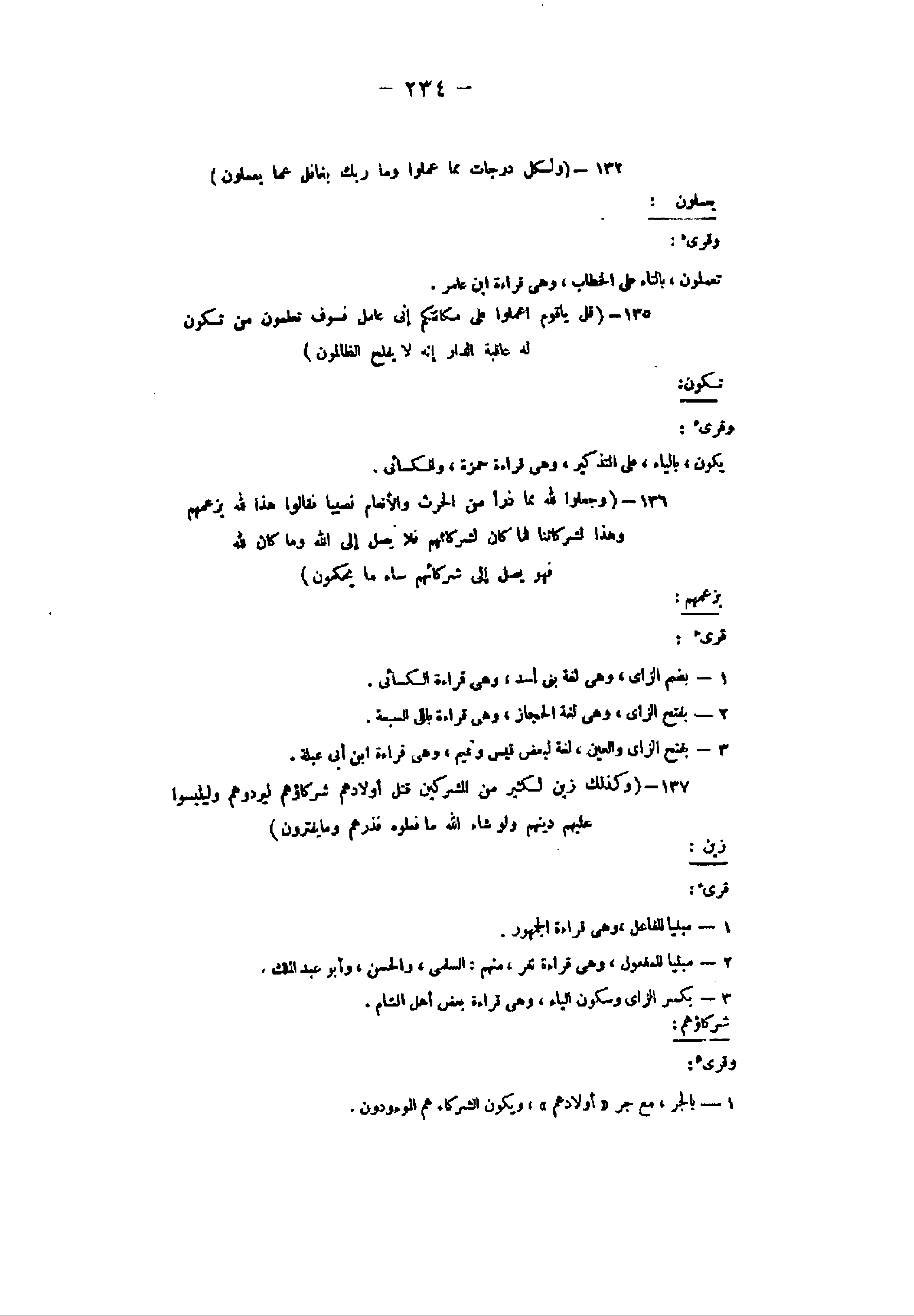 137- (وَكَذلِكَ زَيَّنَ لِكَثِيرٍ مِنَ الْمُشْرِكِينَ قَتْلَ أَوْلادِهِمْ شُرَكاؤُهُمْ لِيُرْدُوهُمْ وَلِيَلْبِسُوا عَلَيْهِمْ دِينَهُمْ وَلَوْ شاءَ اللَّهُ ما فَعَلُوهُ فَذَرْهُمْ وَما يَفْتَرُونَ) زين: