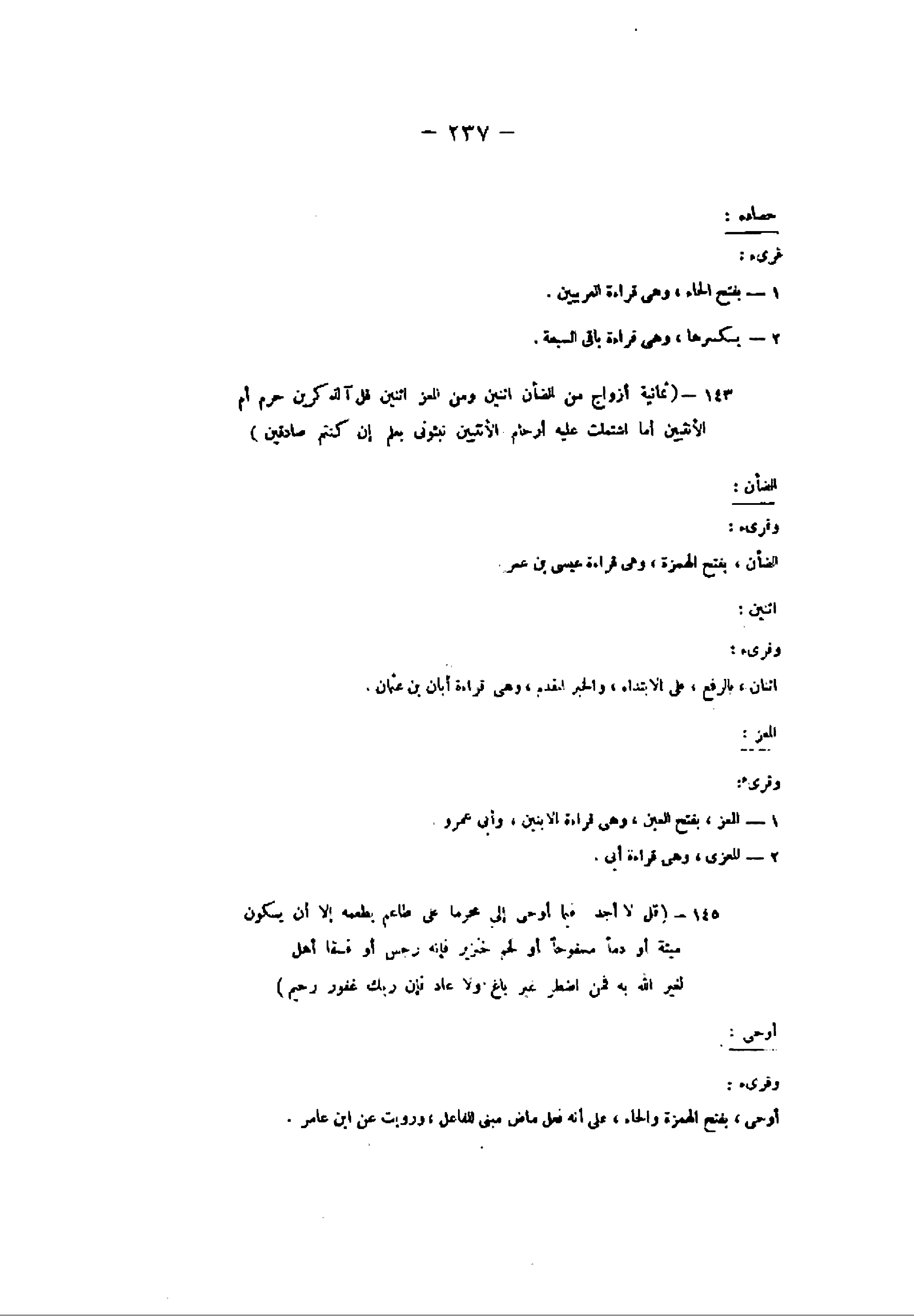 143- (ثَمانِيَةَ أَزْواجٍ مِنَ الضَّأْنِ اثْنَيْنِ وَمِنَ الْمَعْزِ اثْنَيْنِ قُلْ آلذَّكَرَيْنِ حَرَّمَ أَمِ الْأُنْثَيَيْنِ أَمَّا اشْتَمَلَتْ عَلَيْهِ أَرْحامُ الْأُنْثَيَيْنِ نَبِّئُونِي بِعِلْمٍ إِنْ كُنْتُمْ صادِقِينَ) الضأن:
