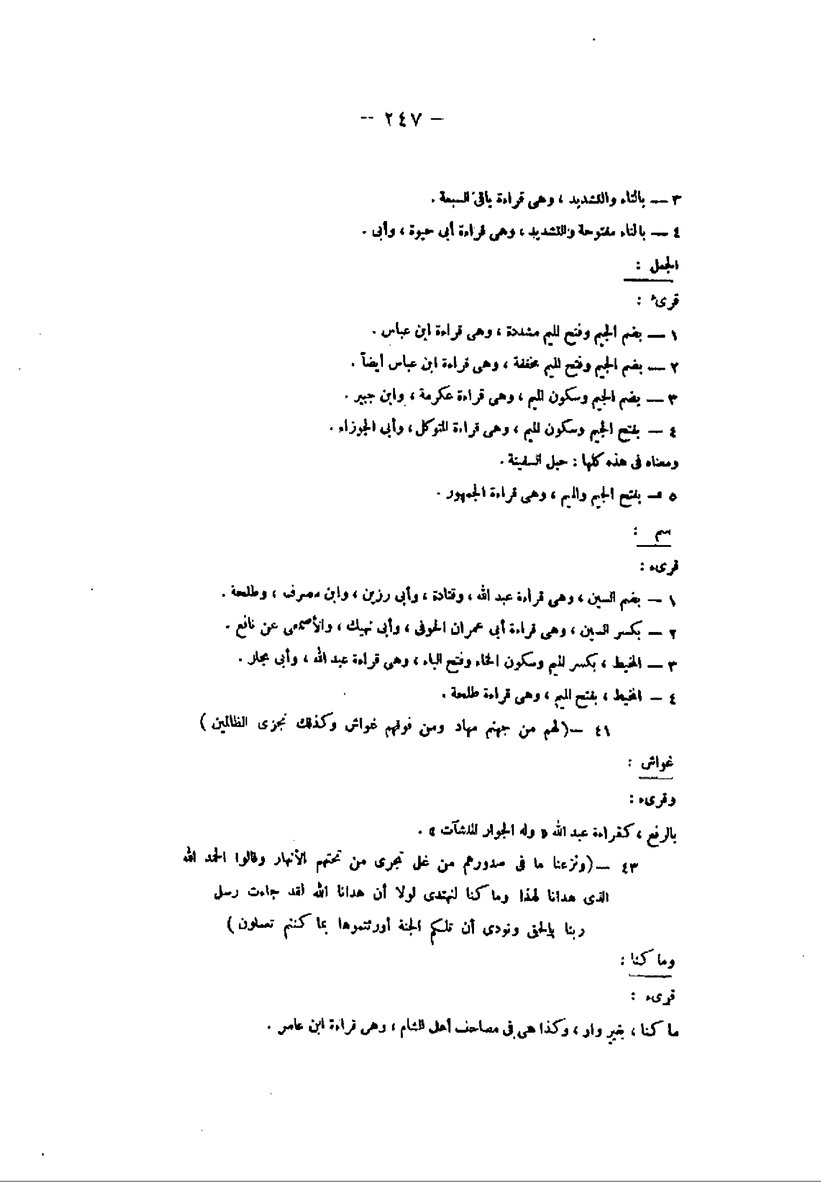 3- بضم الجيم وسكون الميم، وهى قراءة عكرمة، وابن جبير.