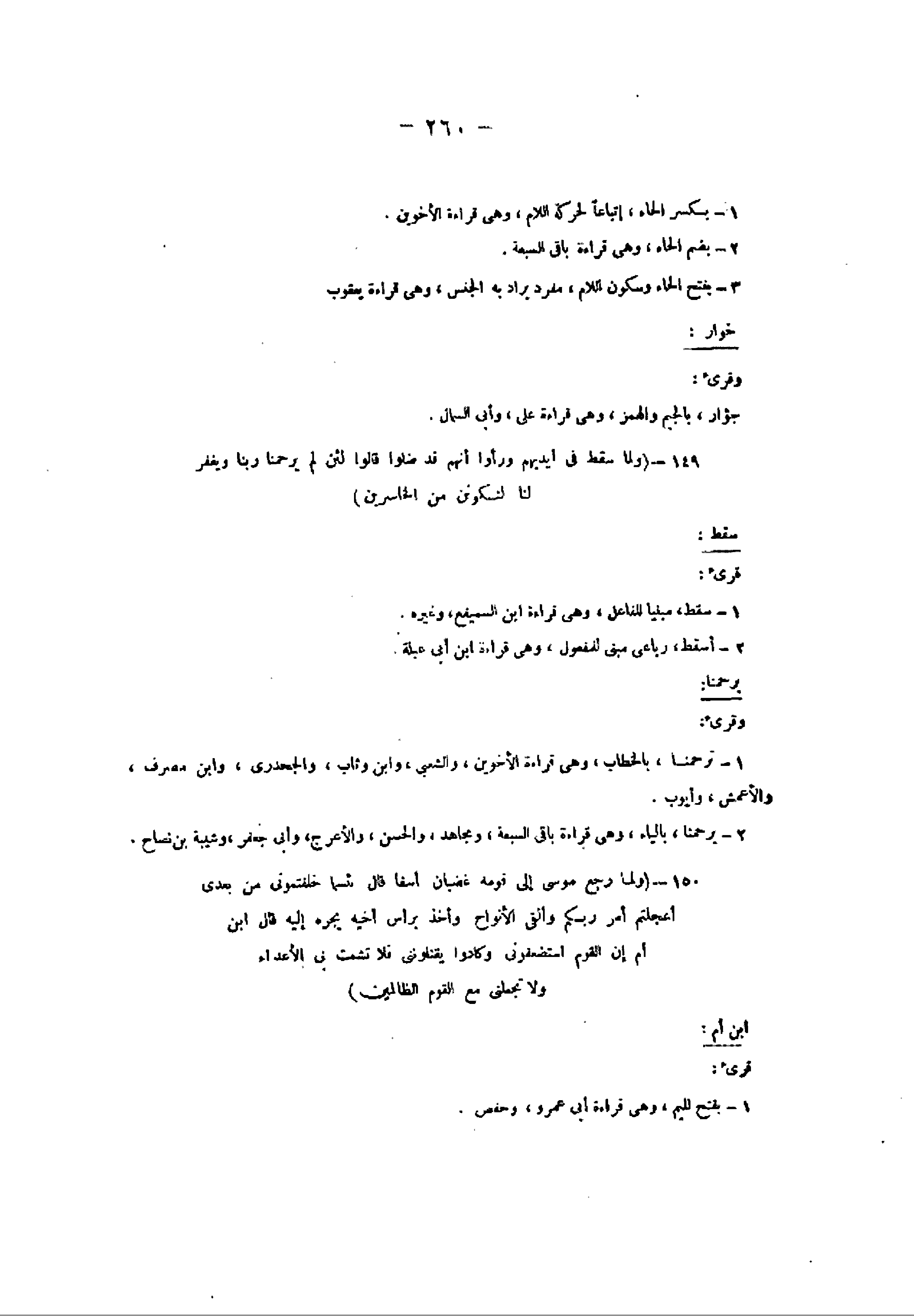 2- يرحمنا، بالياء، وهى قراءة باقى السبعة، ومجاهد، والحسن، والأعرج، وأبى جعفر، وشيبة بن نصاح.