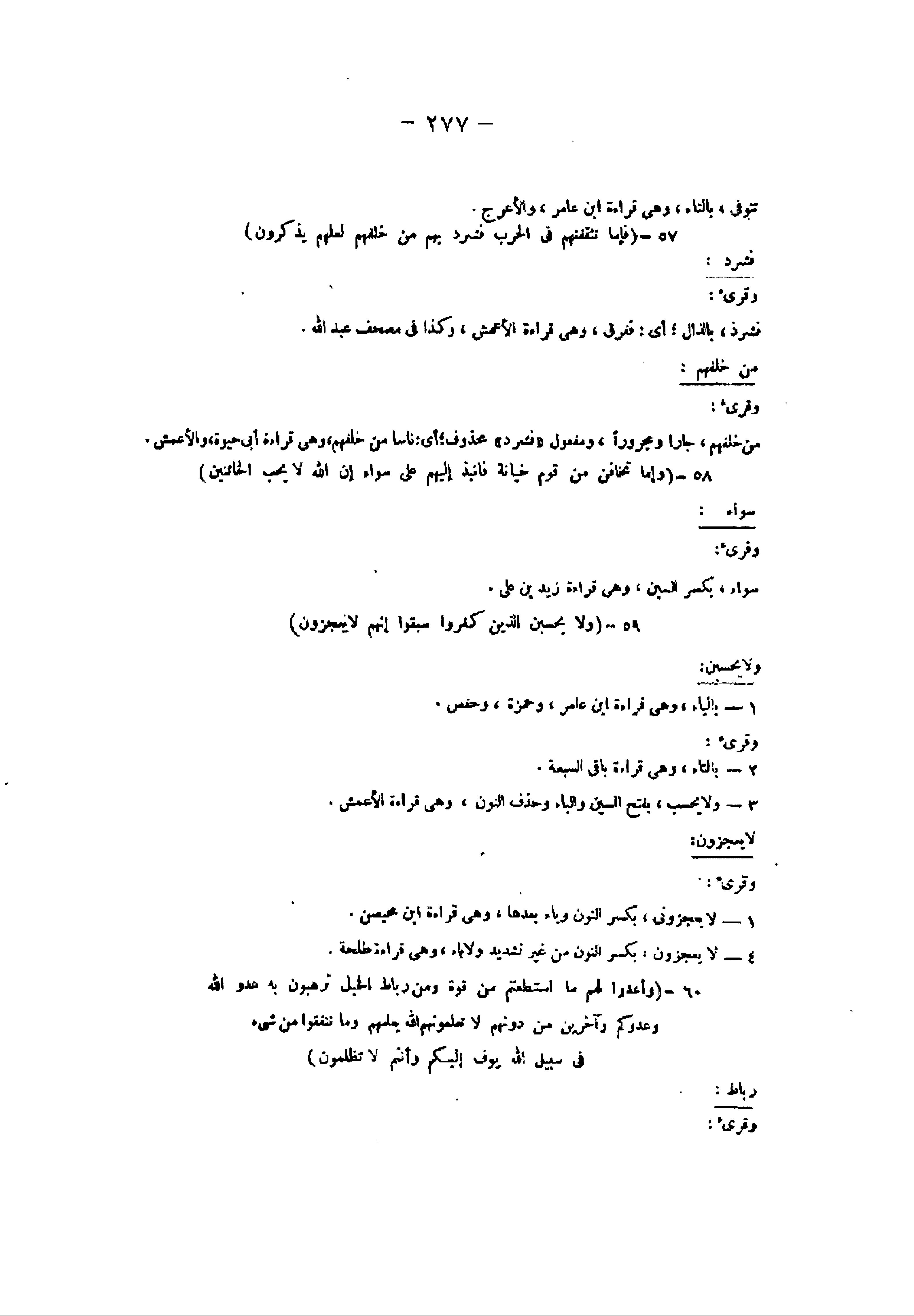 1- لا يعجزونى، بكسر النون وياء بعدها، وهى قراءة ابن محيصن.
