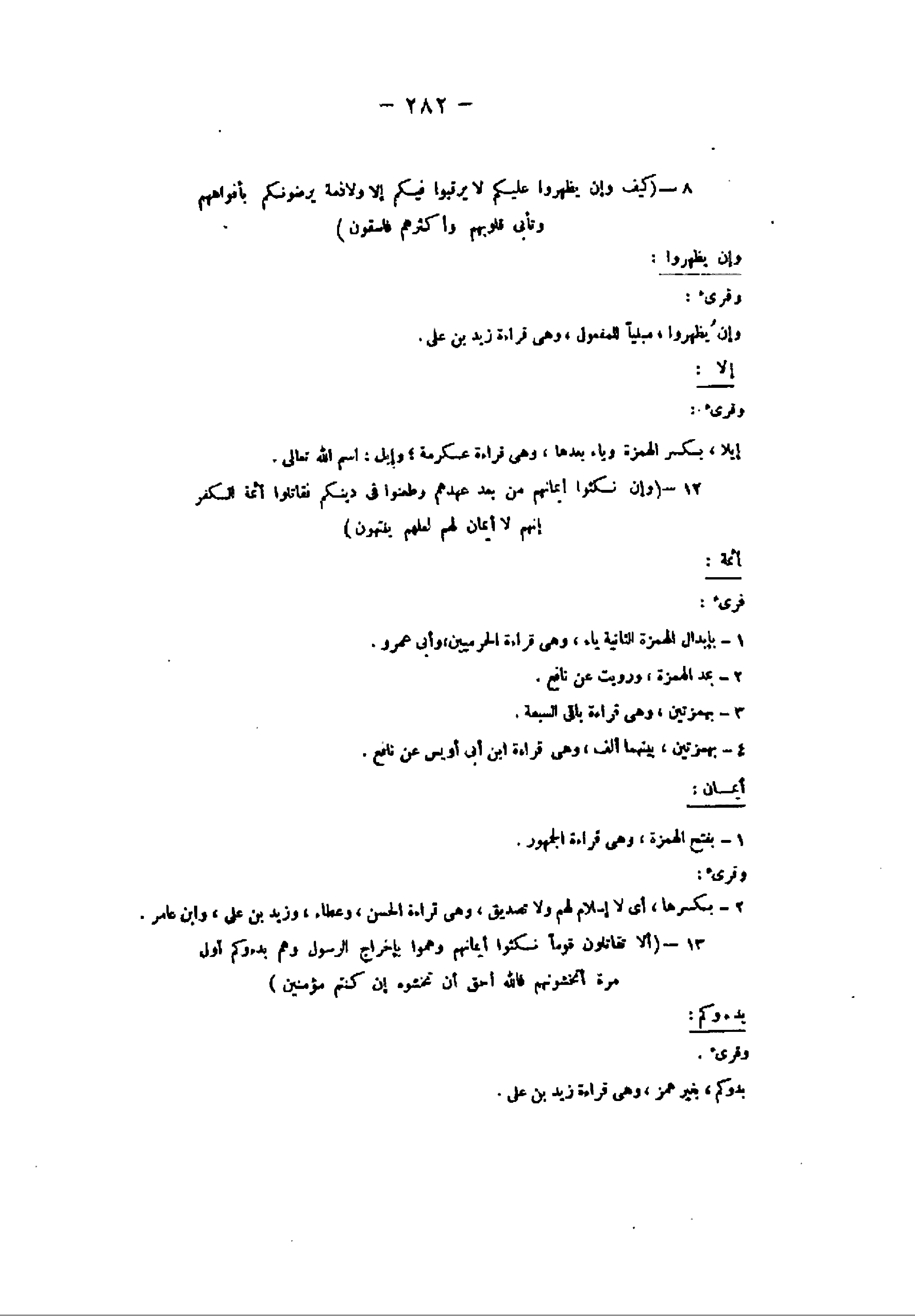 12- (وَإِنْ نَكَثُوا أَيْمانَهُمْ مِنْ بَعْدِ عَهْدِهِمْ وَطَعَنُوا فِي دِينِكُمْ فَقاتِلُوا أَئِمَّةَ الْكُفْرِ إِنَّهُمْ لا أَيْمانَ لَهُمْ لَعَلَّهُمْ يَنْتَهُونَ) أئمة: